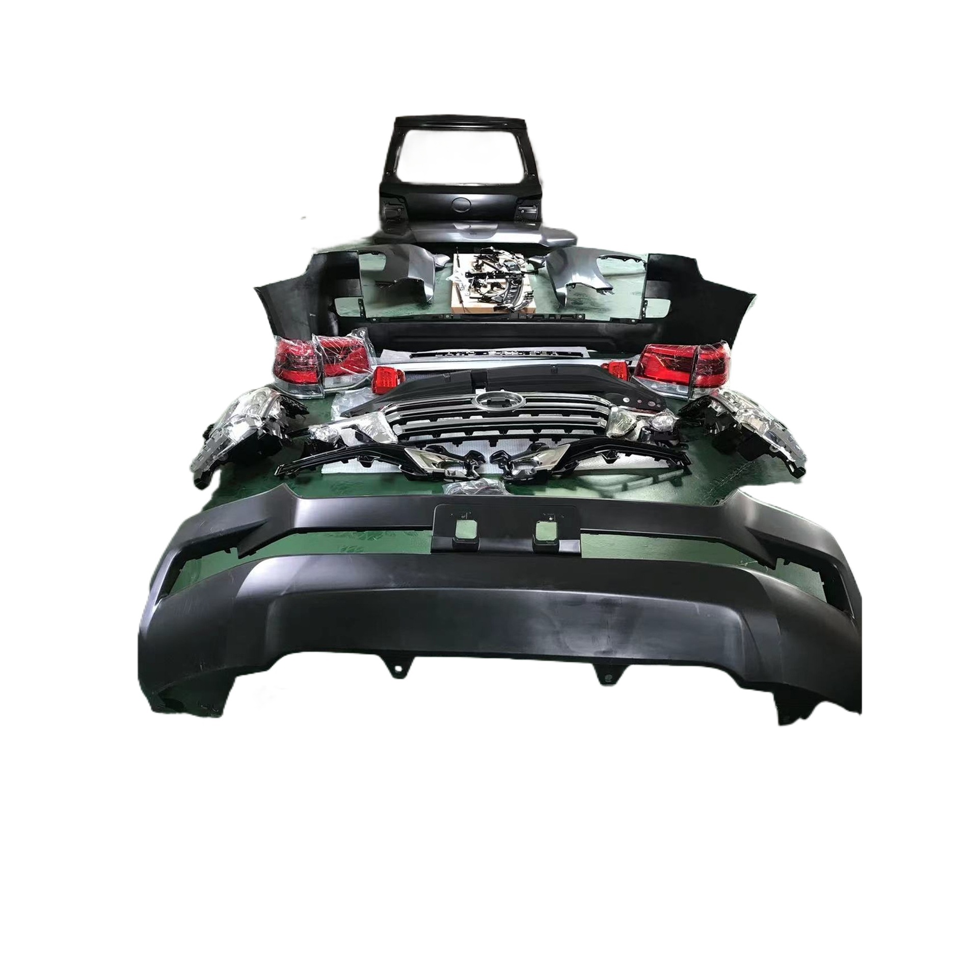- Complete Package: Includes front bumper, rear bumper, grille, headlights (pair), taillights (pair), and all necessary mounting hardware, exactly as pictured. Please verify fitment details before purchasing.