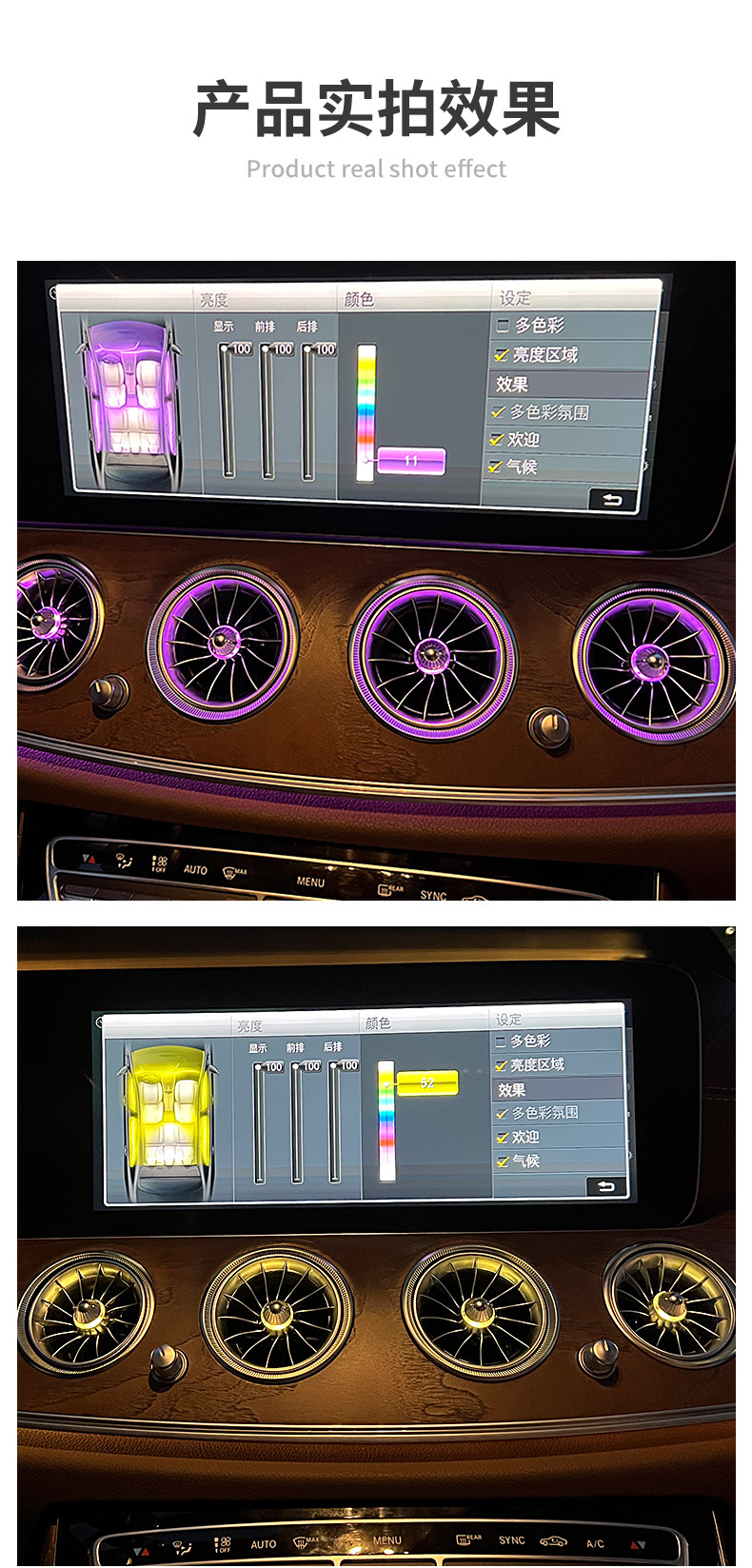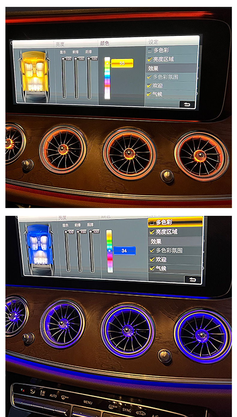 - Enhanced Interior Aesthetics: Transform your car’s interior with dynamic, synchronized LED lighting that mimics the elegant design of the EQS turbine vents, adding a sophisticated and modern ambiance to your driving experience.