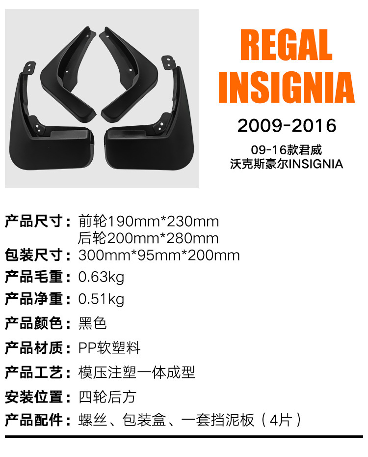 Front Rear Mud Flaps Splash Guards (PP Soft Plastic) for Buick Regal Vauxhall Insignia (2009-2016)