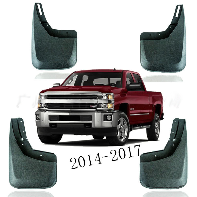 - Complete 4-Piece Set: Package includes a full set of four mud flaps (front and rear) for comprehensive vehicle protection. A vital accessory to keep your Silverado clean and minimize paint damage from road elements.