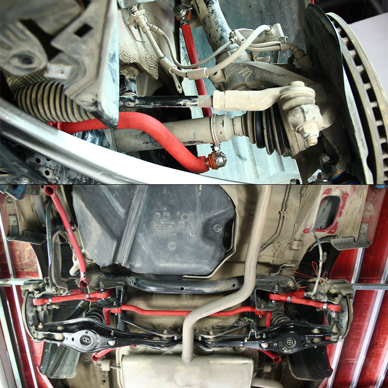 - Premium Material & Durability: Constructed from high-strength steel alloy, this anti-roll bar set offers exceptional rigidity and corrosion resistance, built to withstand challenging road conditions and ensure long-lasting performance.