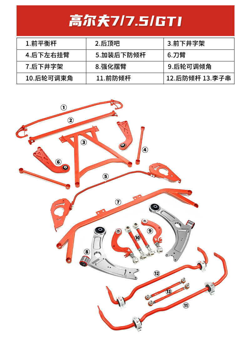Front Stabilizer Bar Anti-Roll Bar Anti-Lean Bar Chassis Strengthening Kit for Golf 7 7.5 GTI