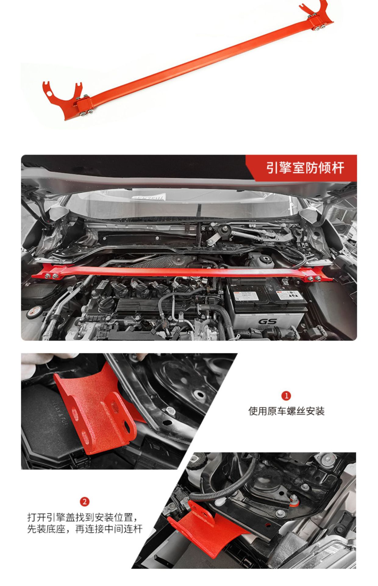 - Package Includes: One front stabilizer bar (front top bar/upper strut bar), essential for improving your vehicle’s structural integrity and driving dynamics.