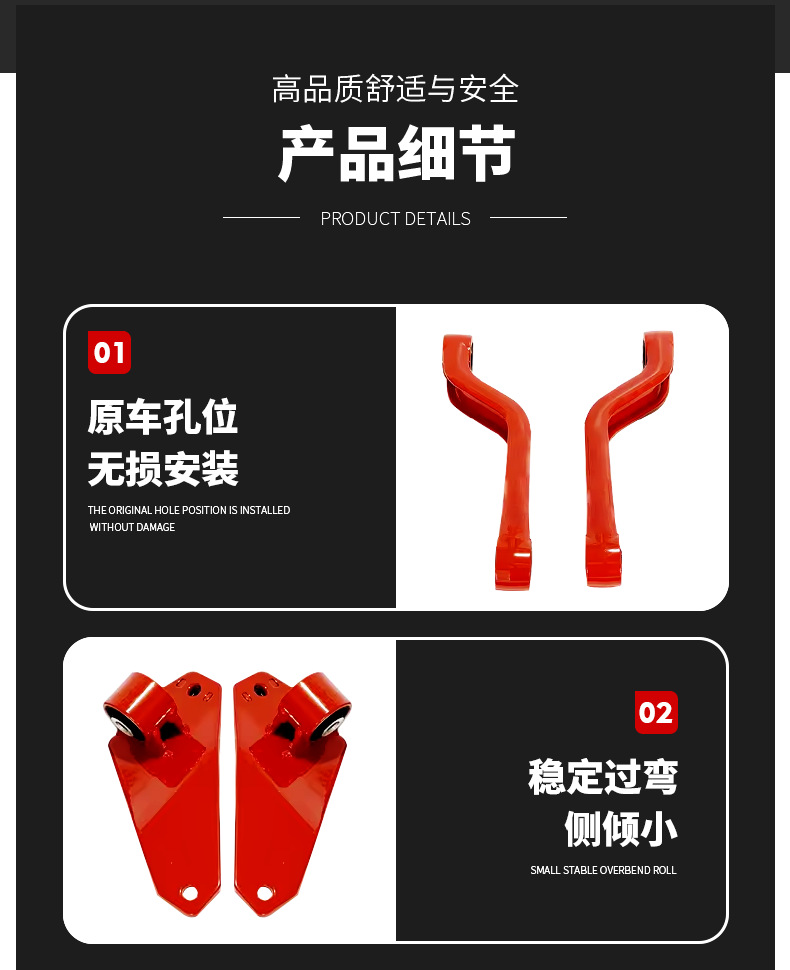 - Improved Handling & Ride Quality: Engineered to reduce body roll during cornering and improve overall vehicle stability, offering a more controlled and comfortable driving experience on various terrains.