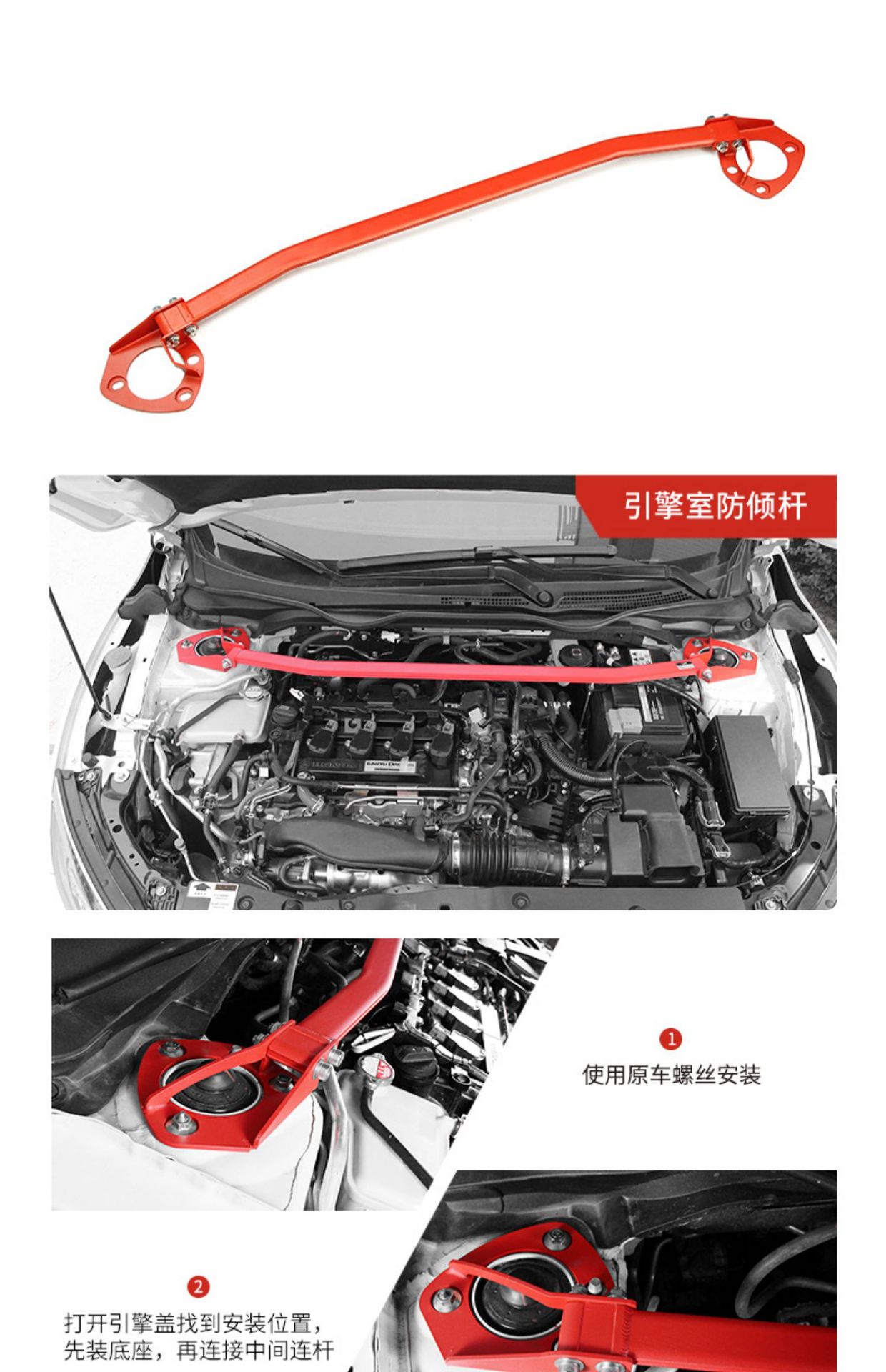 - Package Includes: 1x Front Upper Strut Bar. Upgrade your Civic’s chassis performance with this essential handling enhancement.