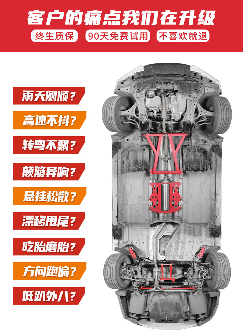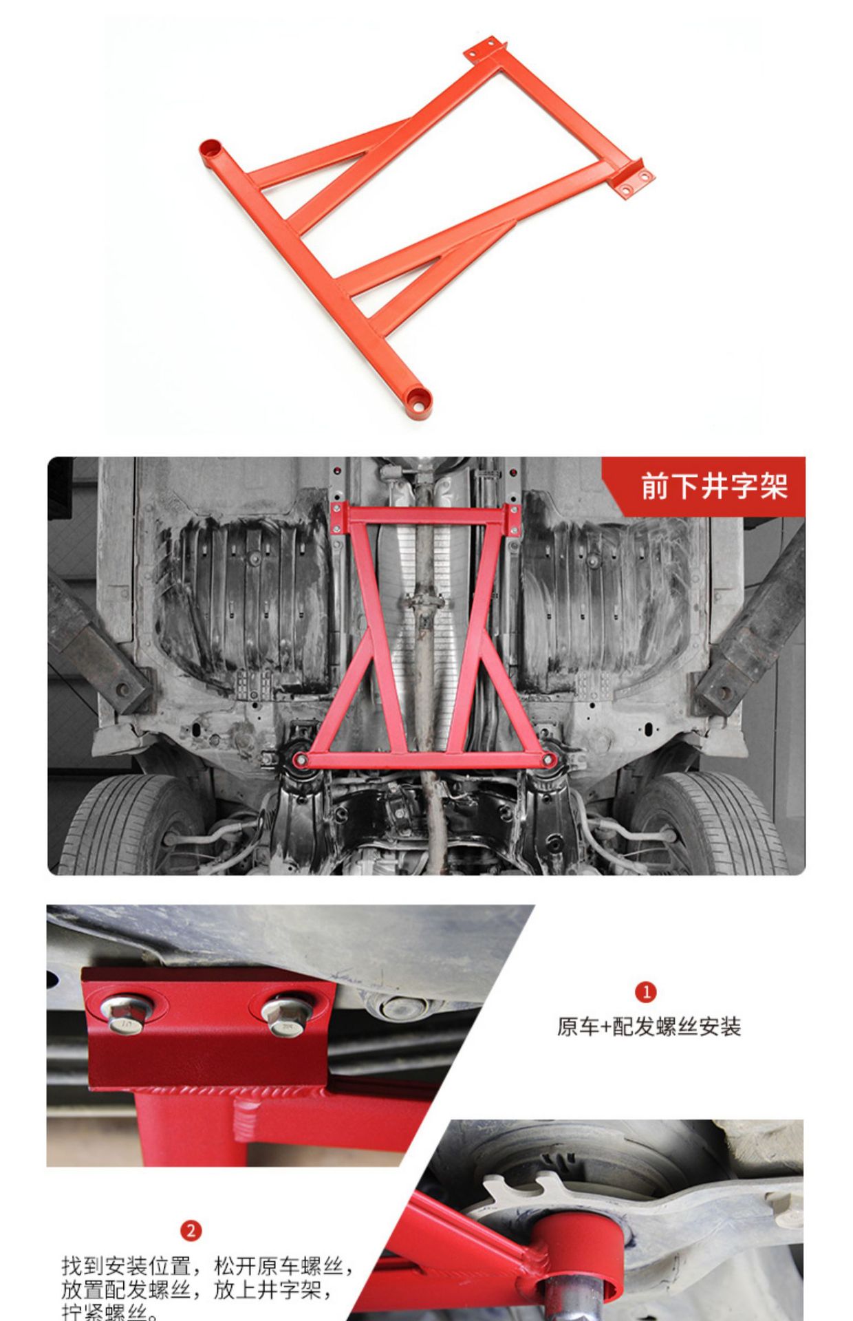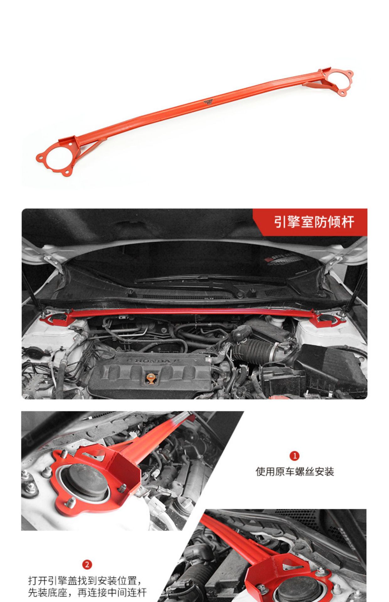 - Comprehensive Chassis Upgrade: This listing is for a front strut bar, part of a full chassis reinforcement system to significantly improve suspension performance, handling, and overall vehicle rigidity.