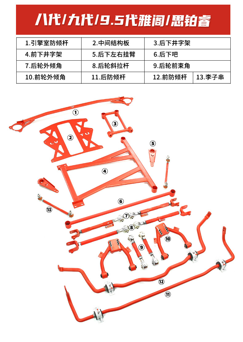 - Precise Fitment: Specifically designed for Honda Accord 8th & 9th Generation, including 9.5th, and Honda Spirior models from 2008 to 2020. Ensure perfect compatibility for enhanced vehicle stability.
