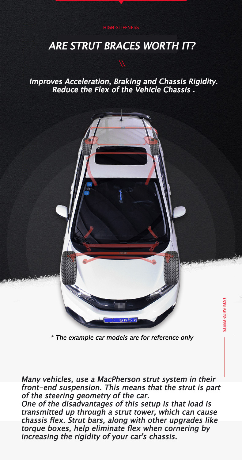 - Package Contents: Includes 1x Front Strut Brace. This essential suspension upgrade minimizes chassis flex during cornering and aggressive driving, extending the lifespan of your vehicle’s suspension components and offering superior handling.