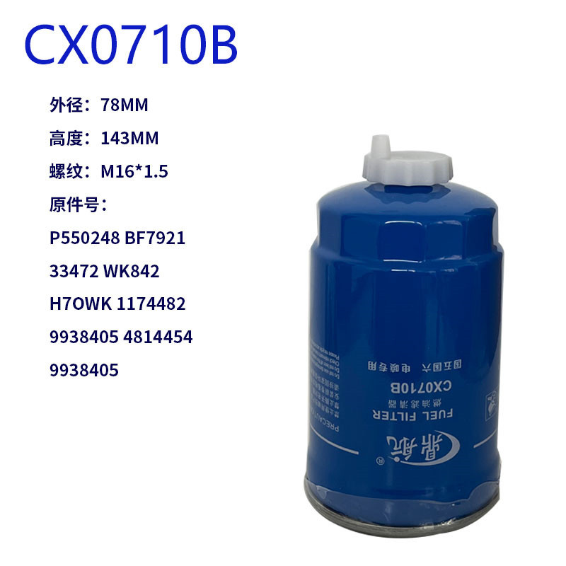 Fuel Filter CX0710B 78mm OD 143mm Height M16*1.5 Thread for Universal Vehicles Replaces P550248 BF7921 33472 WK842