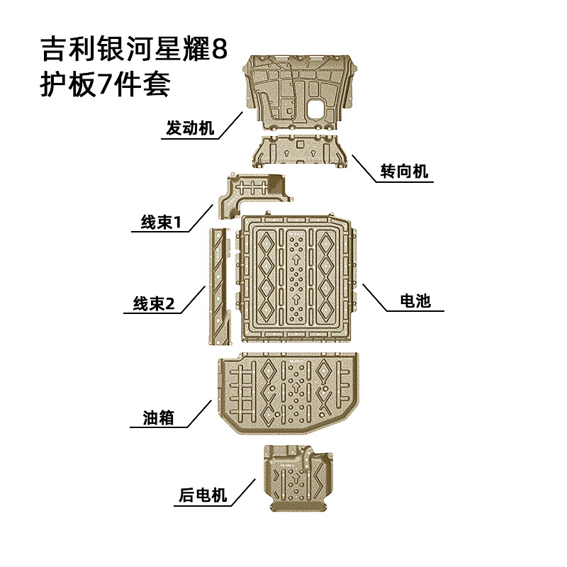 - Complete Package: Includes a 7-piece full-car underbody protection plate set for Geely Galaxy Xingyao 8, exactly as pictured. Please verify fitment details before purchasing.