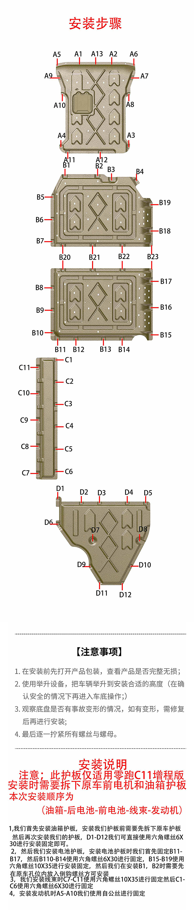 - Complete Package: Includes a full set of chassis protective plates, exactly as pictured, designed for specific Leapmotor C11 models. Please verify fitment details before purchasing.
