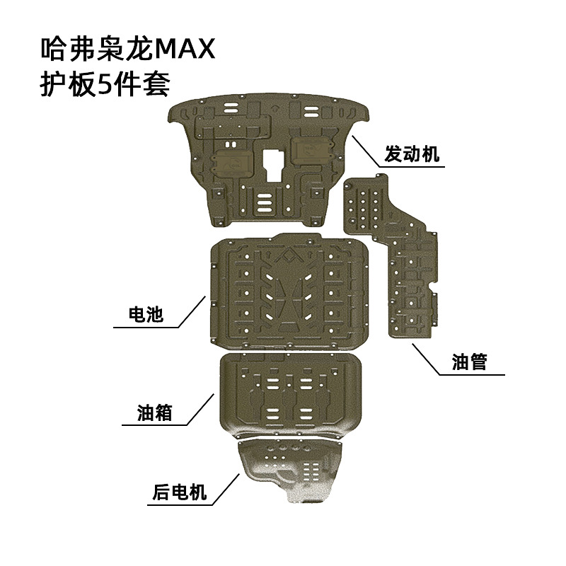 - Complete Package: Includes a full set of underbody protection plates for the engine, battery, fuel tank, rear motor, and oil pipe, exactly as pictured for the Haval Xiaolong MAX.