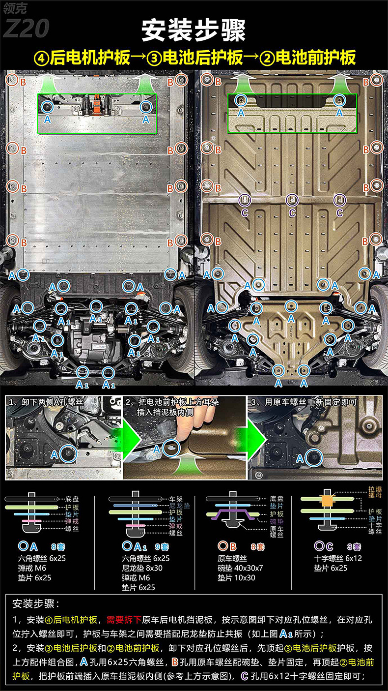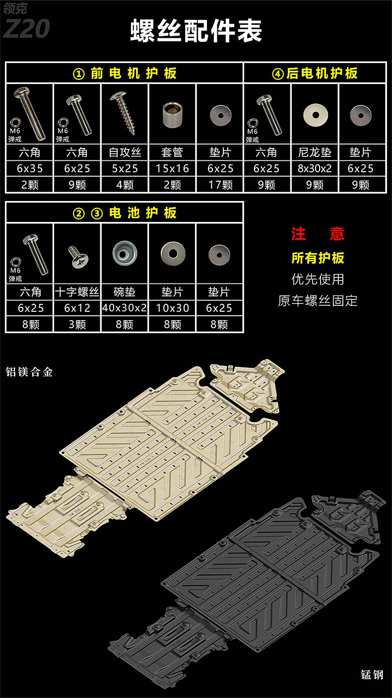 - Complete Package: Includes the full set of underbody skid plates for the front motor, front battery, rear battery, and rear motor, exactly as pictured. Please verify fitment details before purchasing.