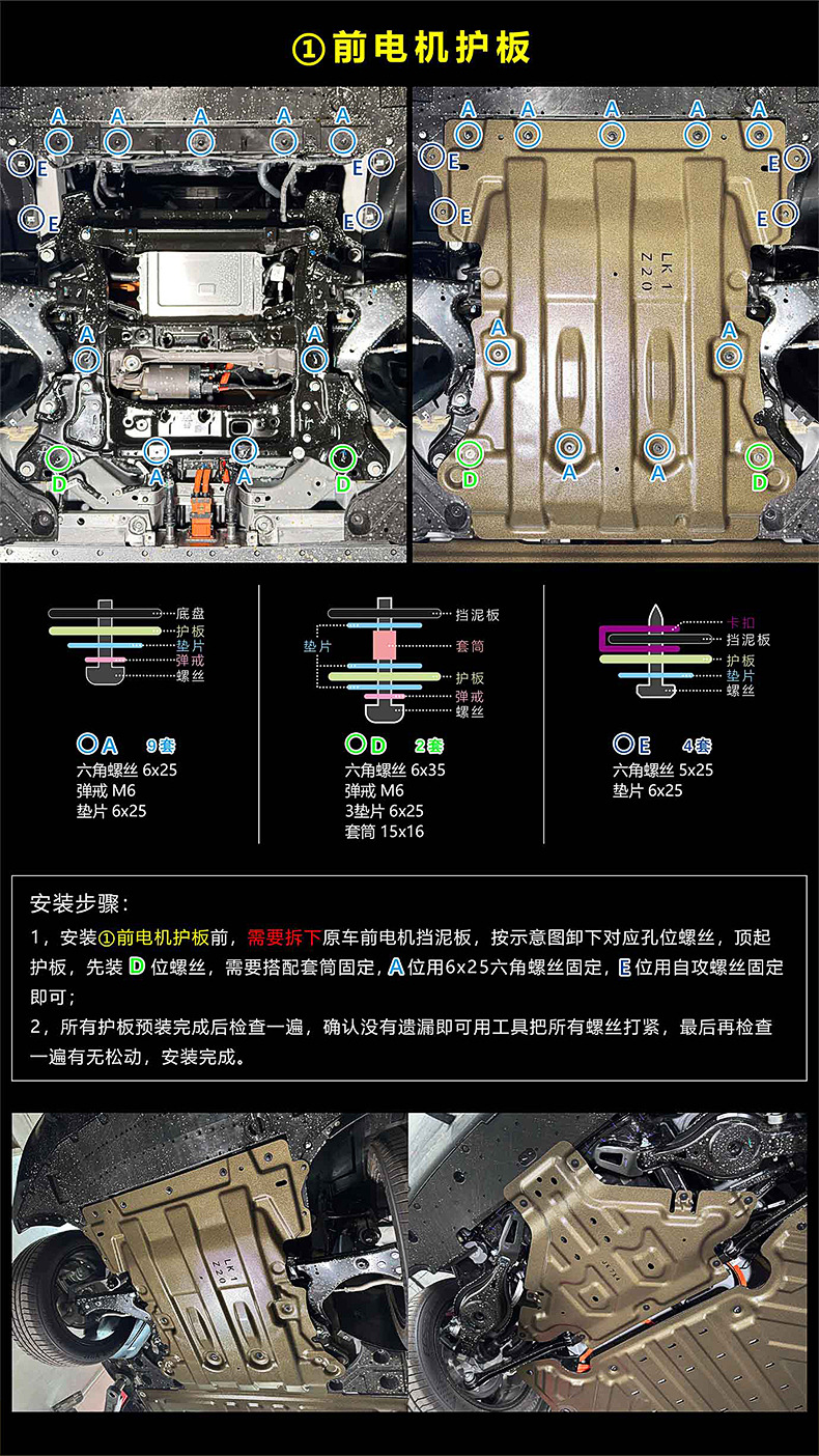 - Performance-Driven Design: Offers full underbody protection for the engine, front battery, rear battery, and electric motors, safeguarding against impacts and wear.