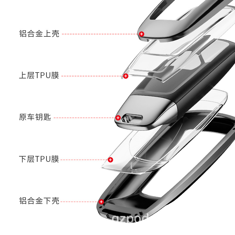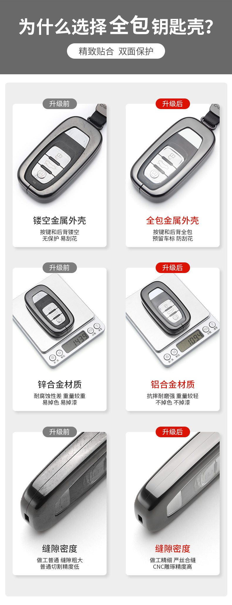 Full Coverage Aluminum Alloy Key Case Shell for Audi A4L A6L Q2 Q3 Q5 A3 A5 A6 A7 A8 Q8