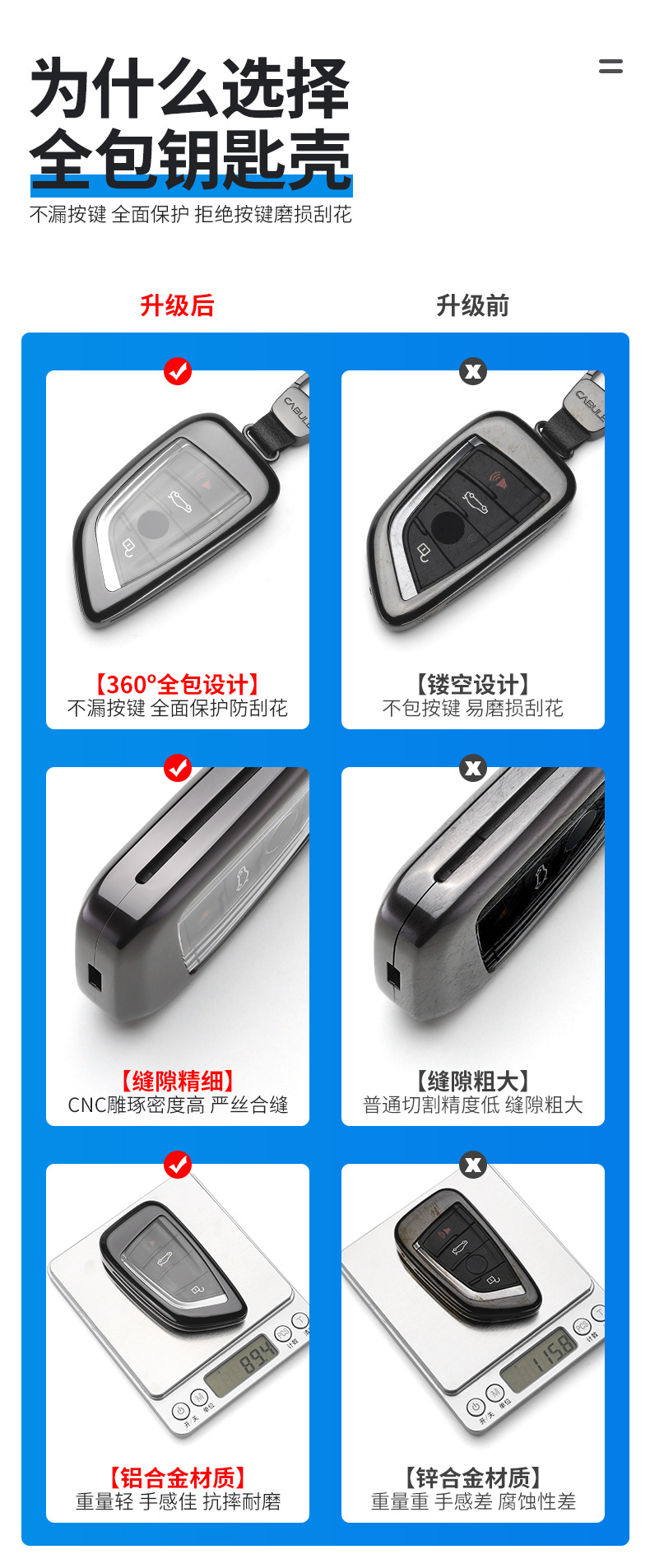- Heavy-Duty Build: Crafted from premium aluminum alloy as visible in the image, providing enhanced protection and a sleek, high-end appearance for your key.
