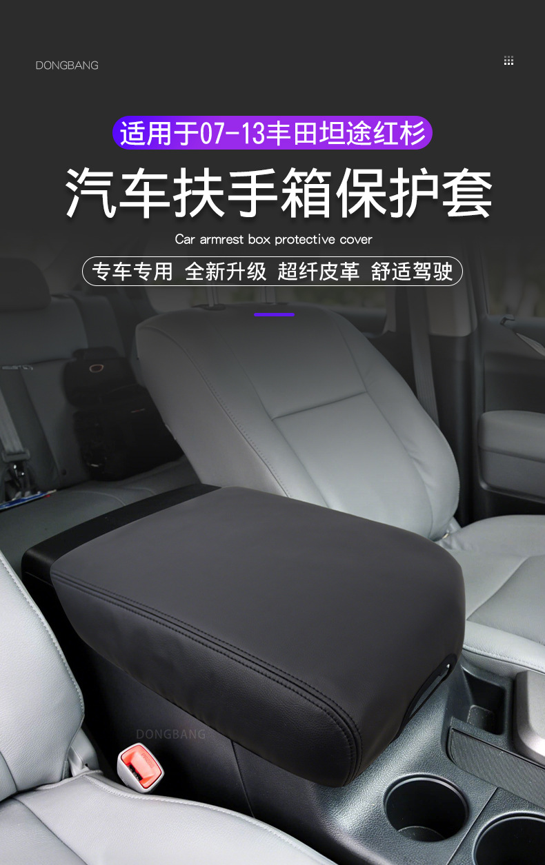 Full Coverage Black Microfiber Leather Center Console Armrest Cover for Toyota Tundra Sequoia 2007-2013