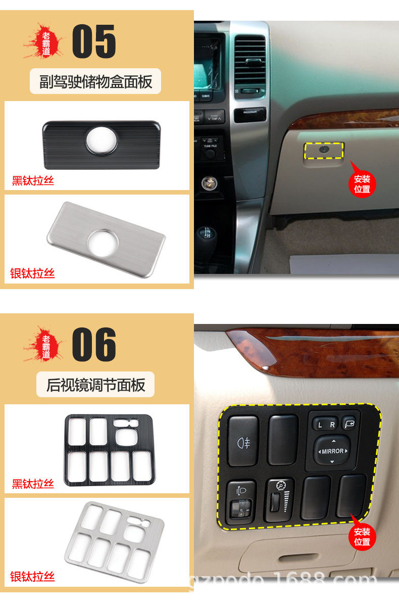- Direct Fitment: A perfect replacement interior trim kit for Toyota Land Cruiser Prado LC120 2003-2009 models. Enhances the vehicle’s interior aesthetics.