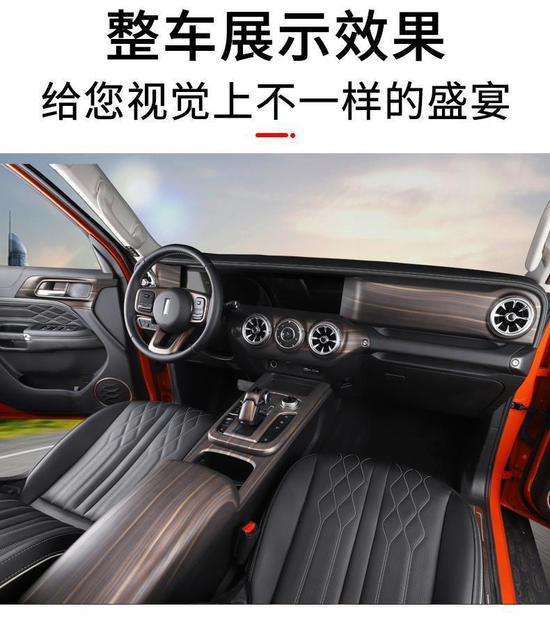 - Performance-Driven Design: Enhances the vehicle’s interior appearance with a luxurious and scratch-resistant wood grain texture, covering multiple panels including dashboard, center console, and door areas.