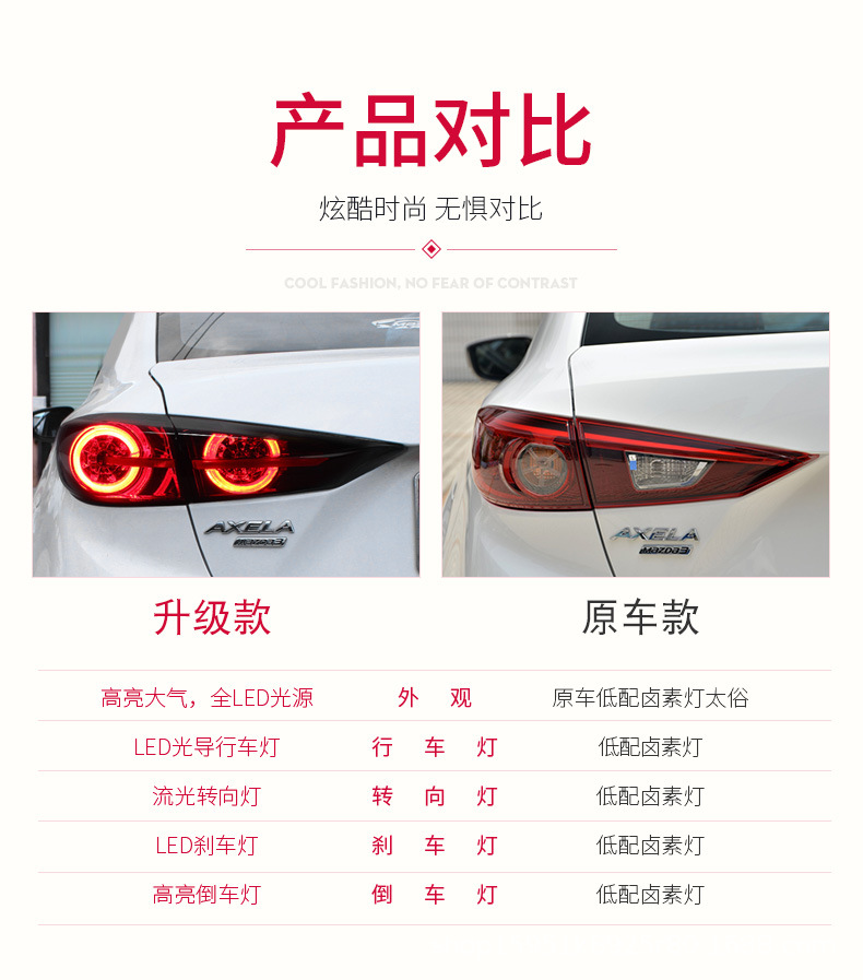 - Complete Set Included: Package contains a complete pair (left and right) of taillight assemblies. Enhance your Mazda 3 Axela’s rear lighting and safety with this concept upgrade.