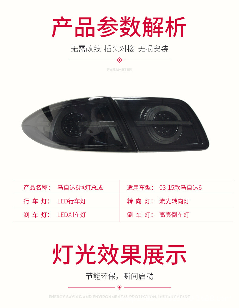 Full LED Flowing Turn Signal Rear Tail Light Assembly for Mazda 6 (2003-2015)