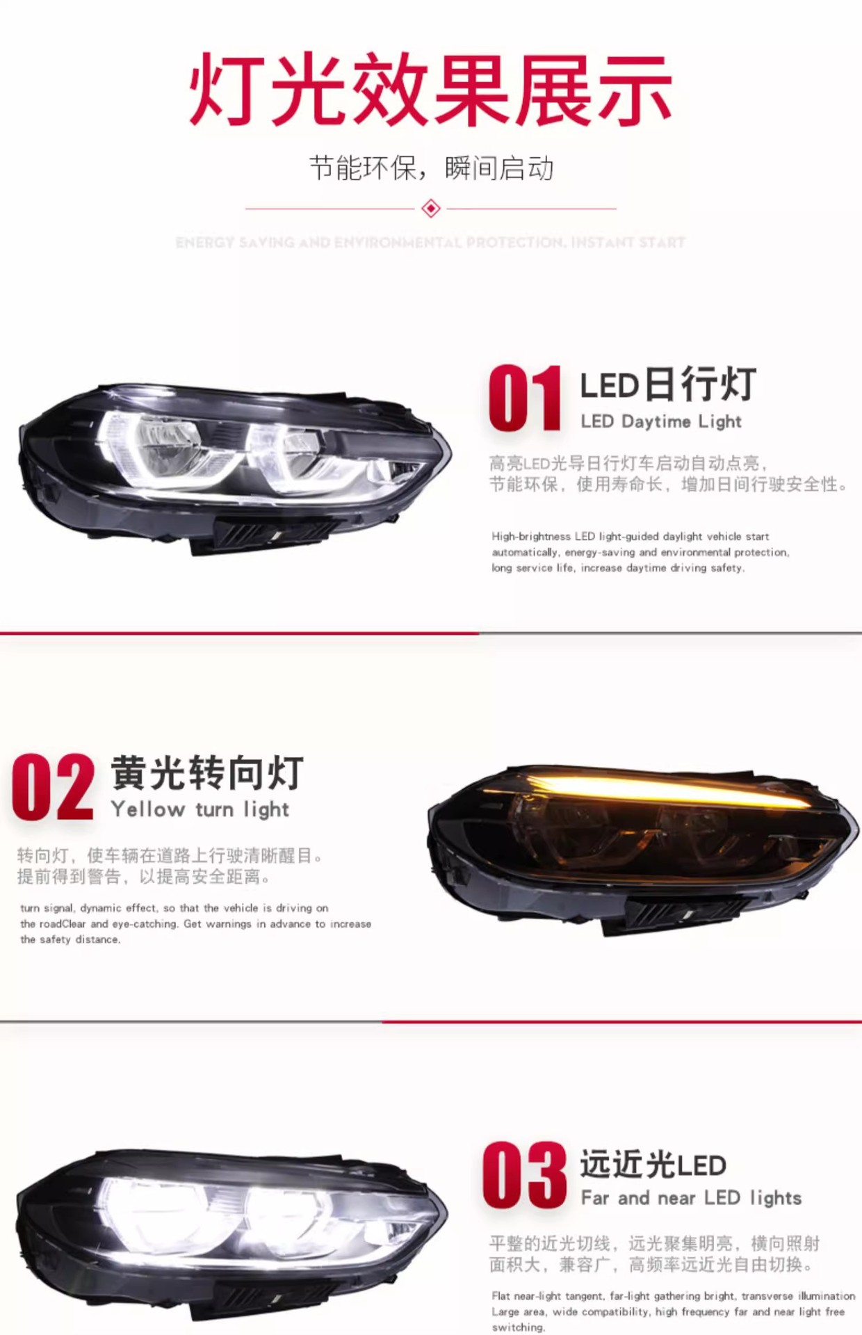 - Enhanced Aesthetics & Visibility: Upgrade your vehicle’s appearance with a modern full LED design, featuring striking Angel Eye daytime running lights for improved visibility and a distinctive, luxurious look.