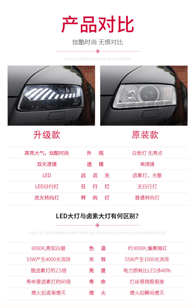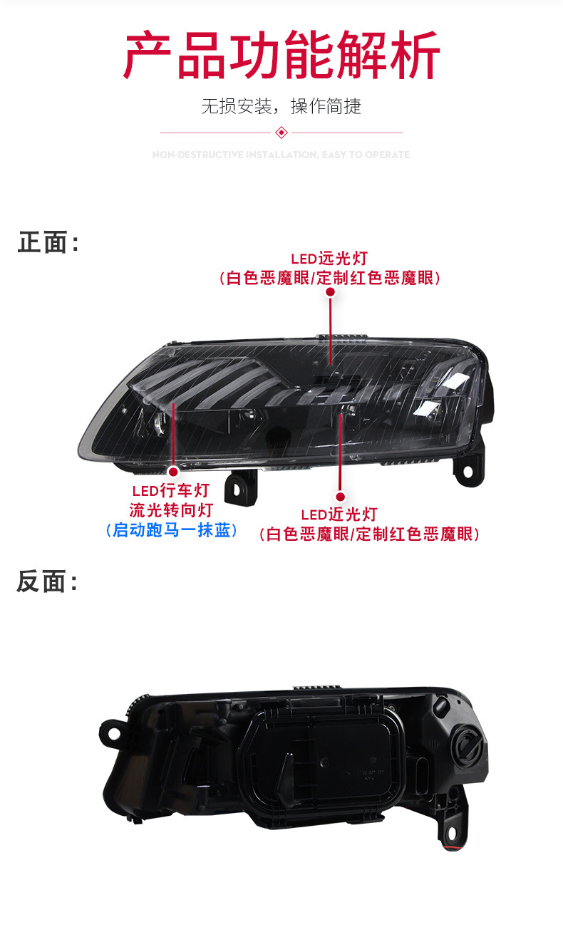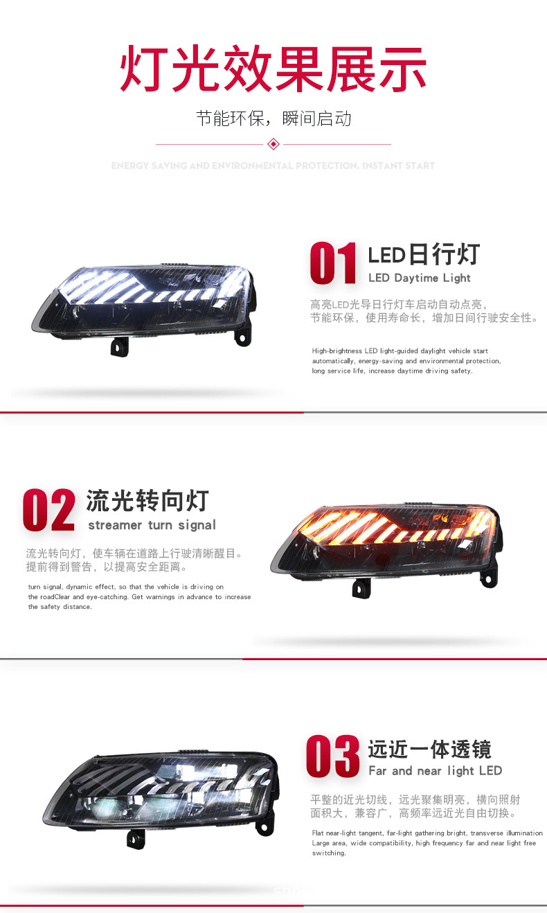 - Precise Fitment: Specifically designed for Audi A6L (2005-2011) models, ensuring a perfect, direct-fit replacement for your original headlights.