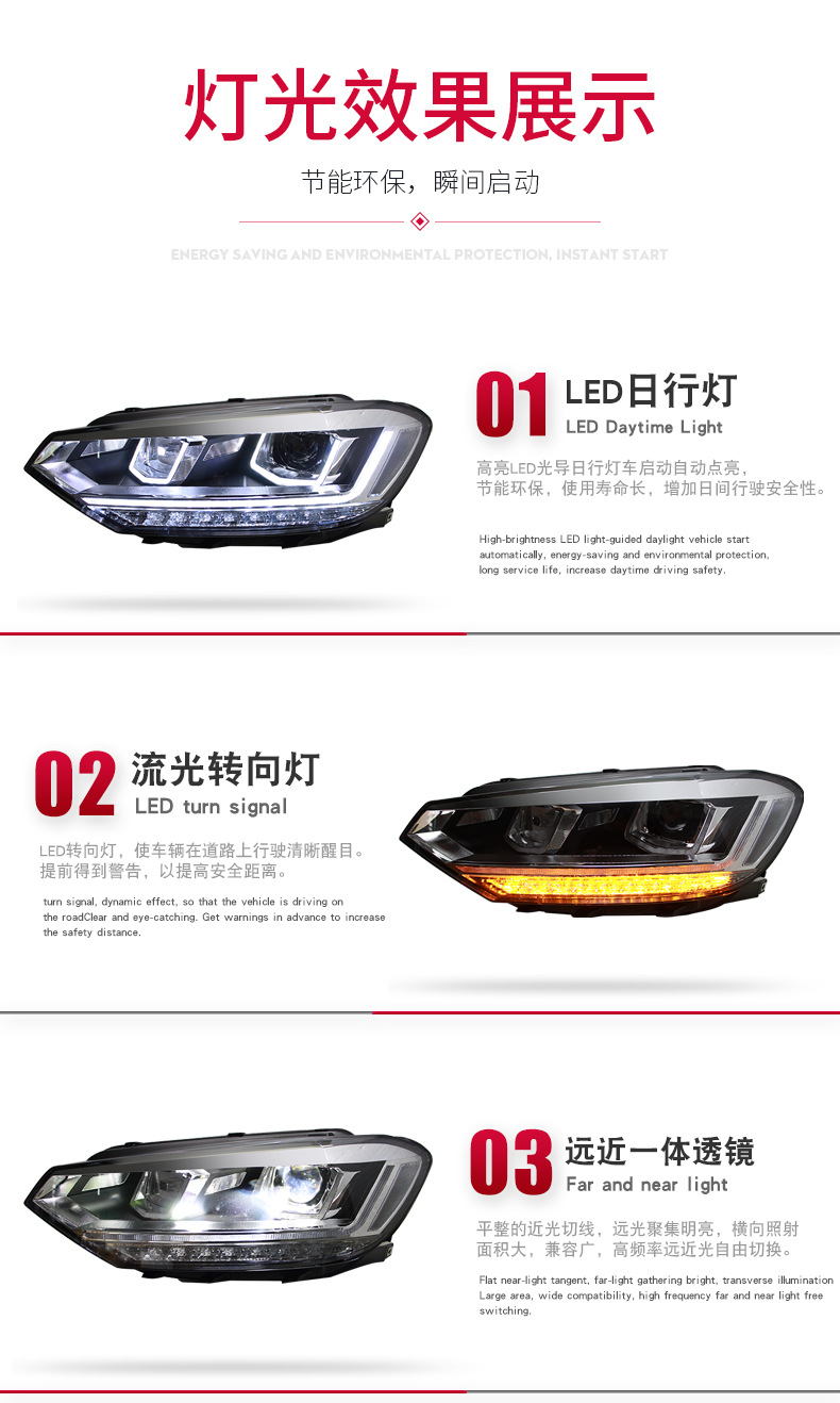 Full LED Headlight Assembly Conversion Dual Beam Projector LED DRL Turn Signal for New Touran L (2016-2019)