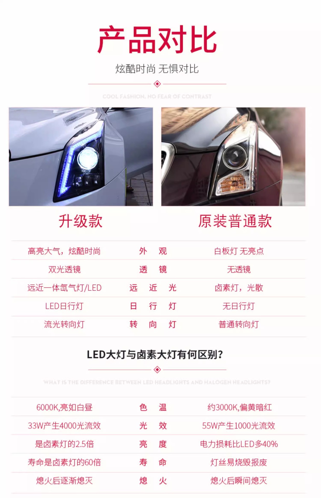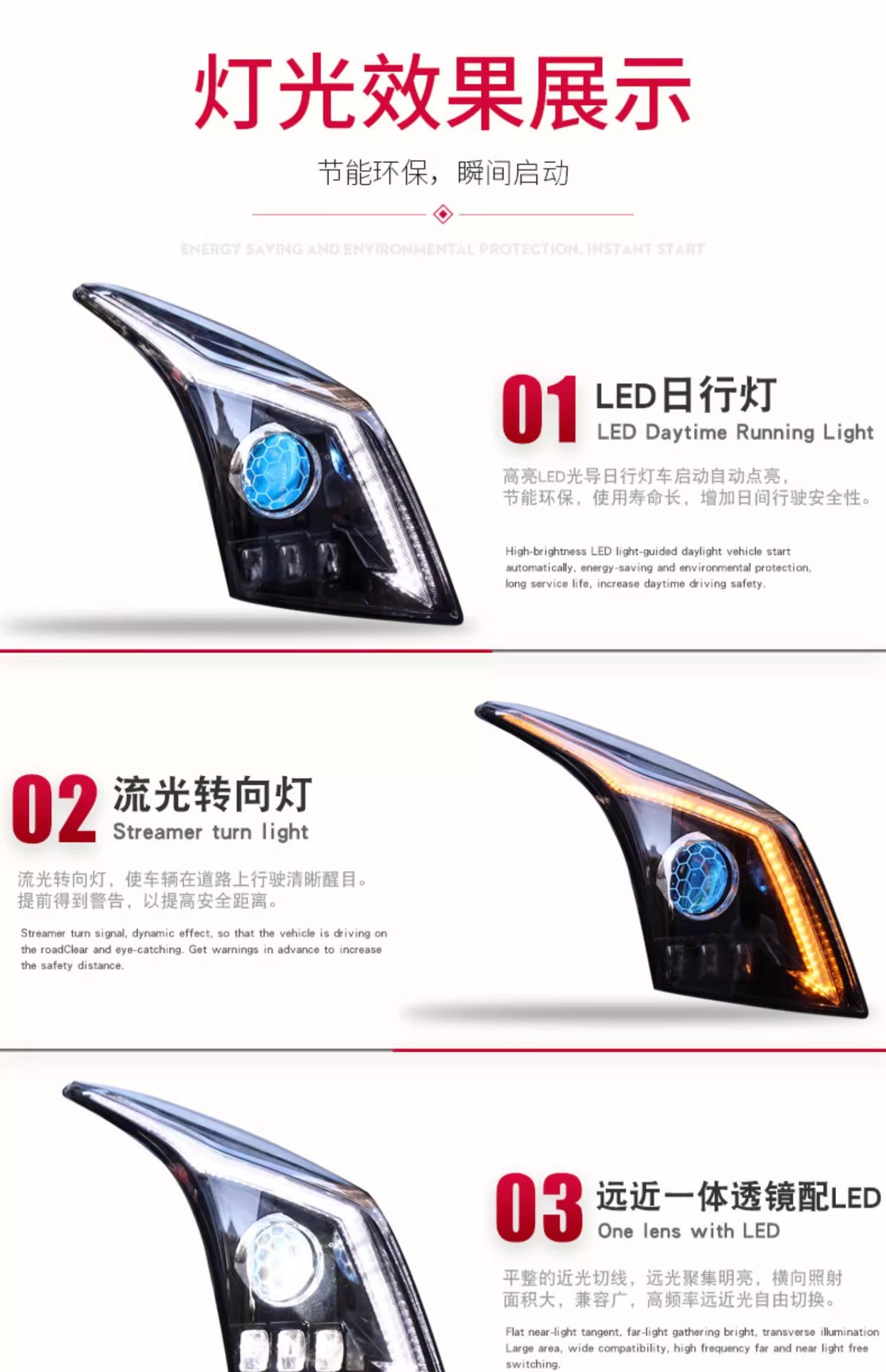 Full LED Headlight Assembly Conversion GTR Style DRL Flowing Turn Signal for Cadillac ATSL