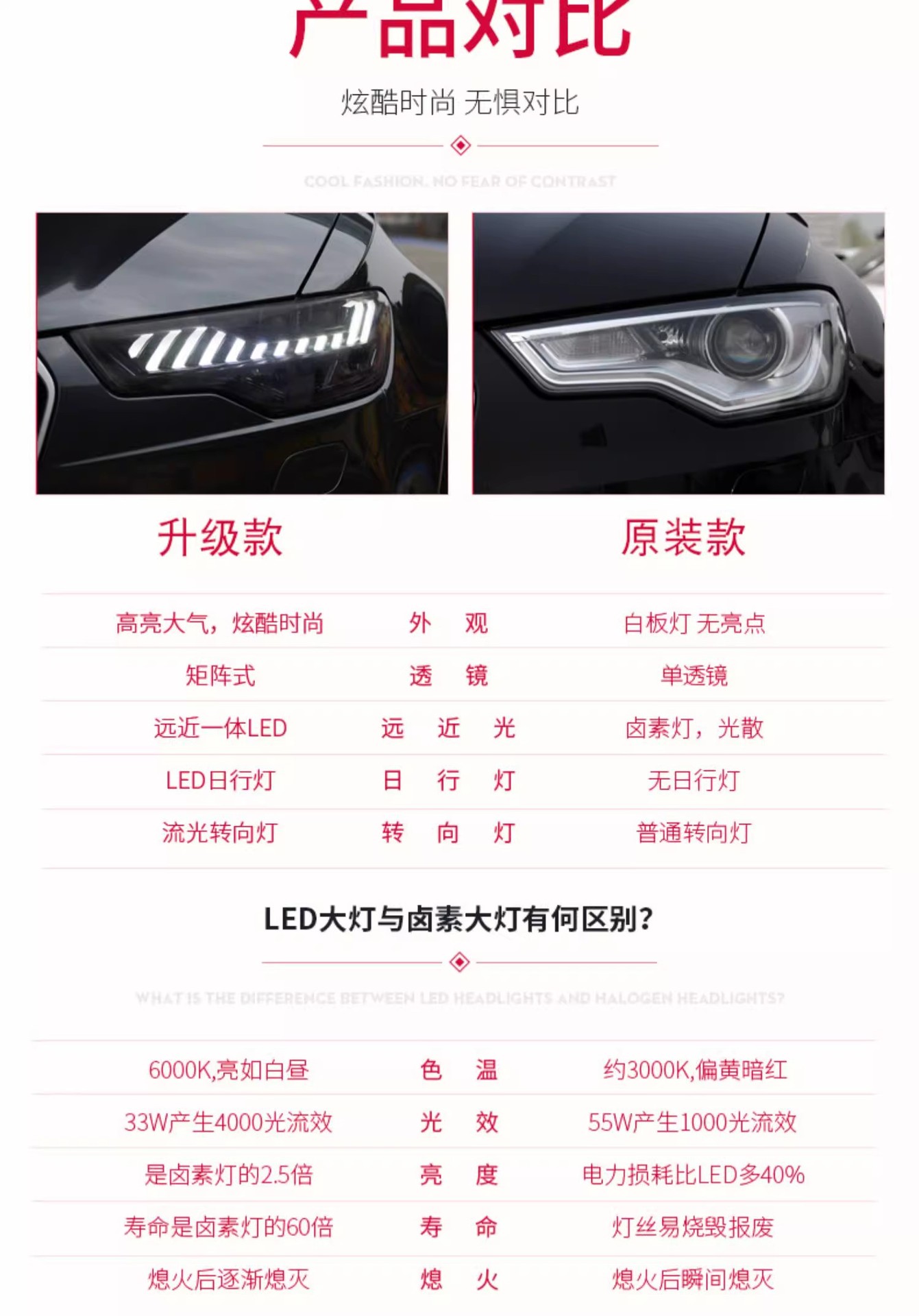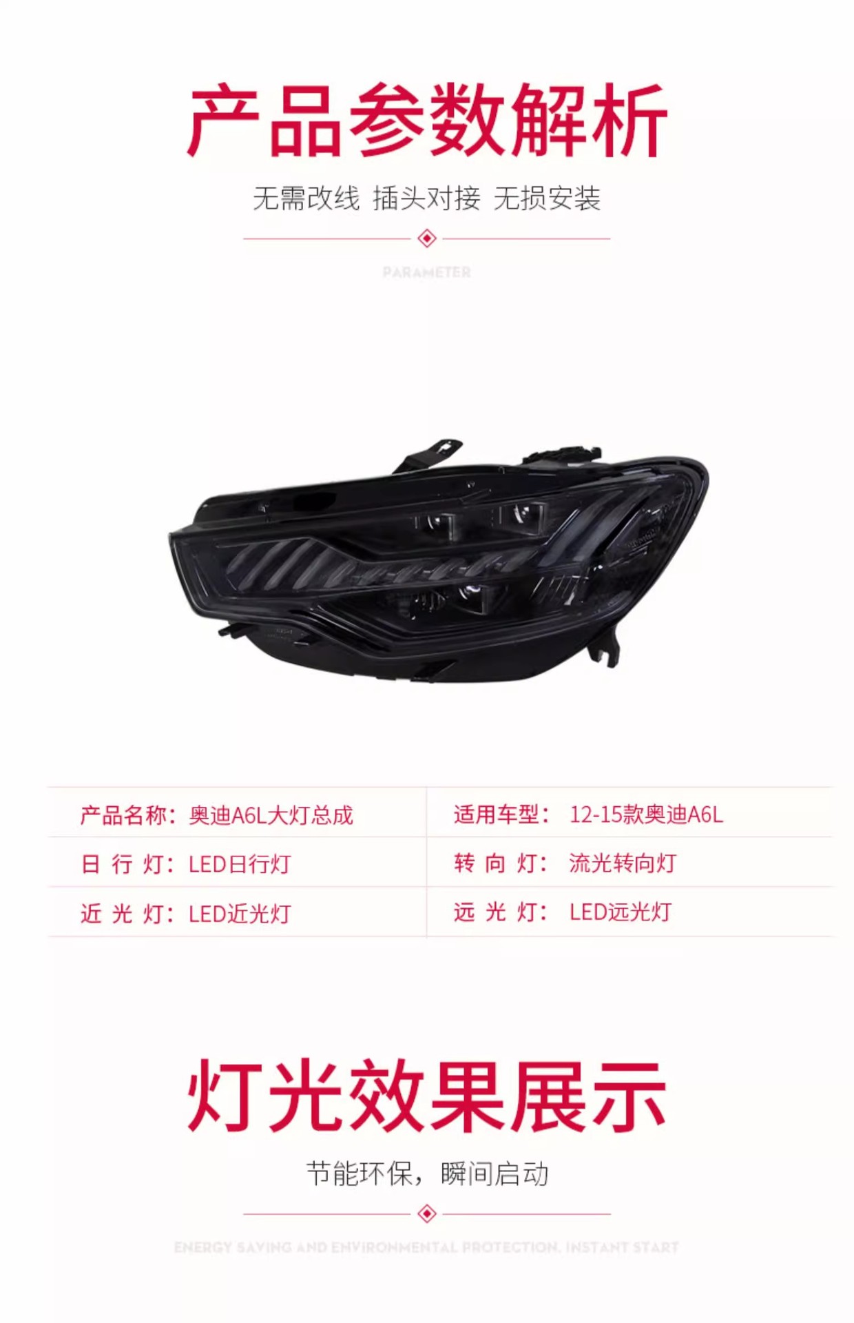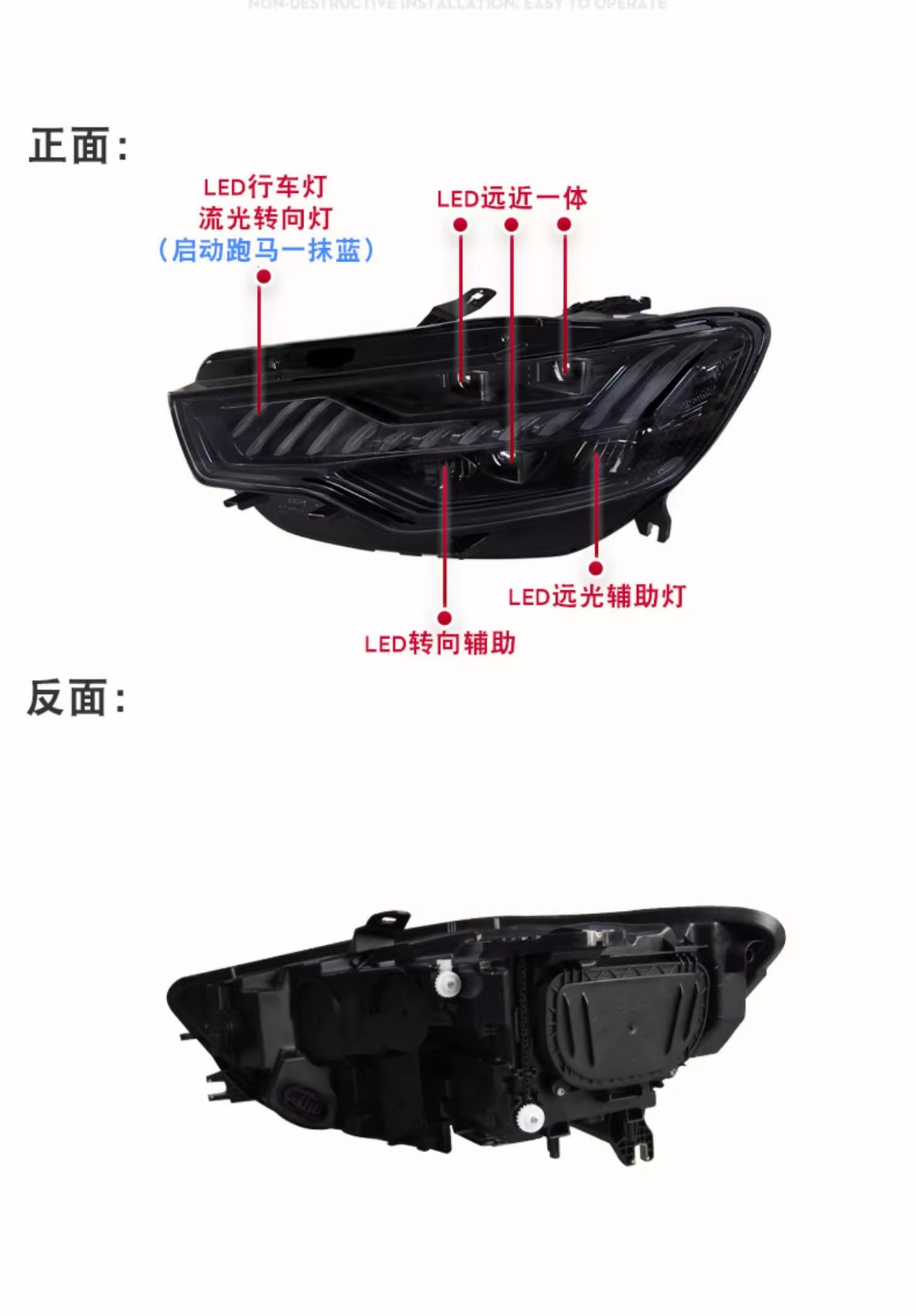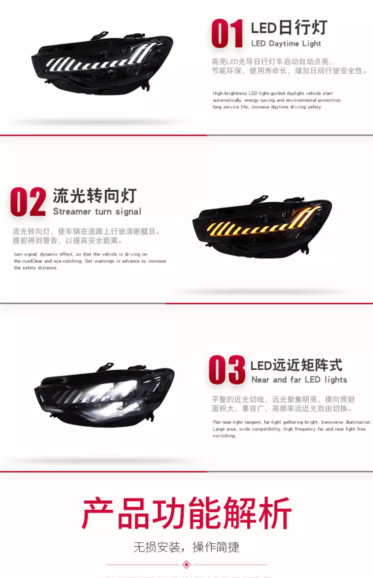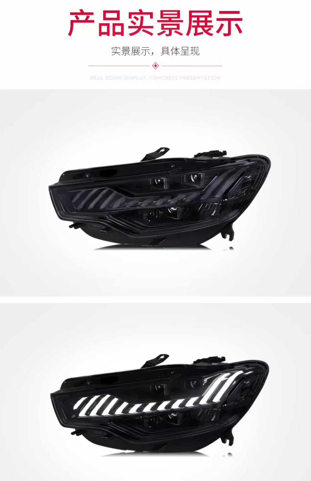 - Enhanced Visual Appeal: Features a distinctive “Blue Line” LED daytime running light design and dynamic sequential turn signals, transforming the front aesthetic of your Audi A6L with a modern, luxurious, and unique look inspired by the A7.