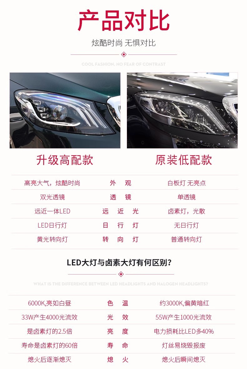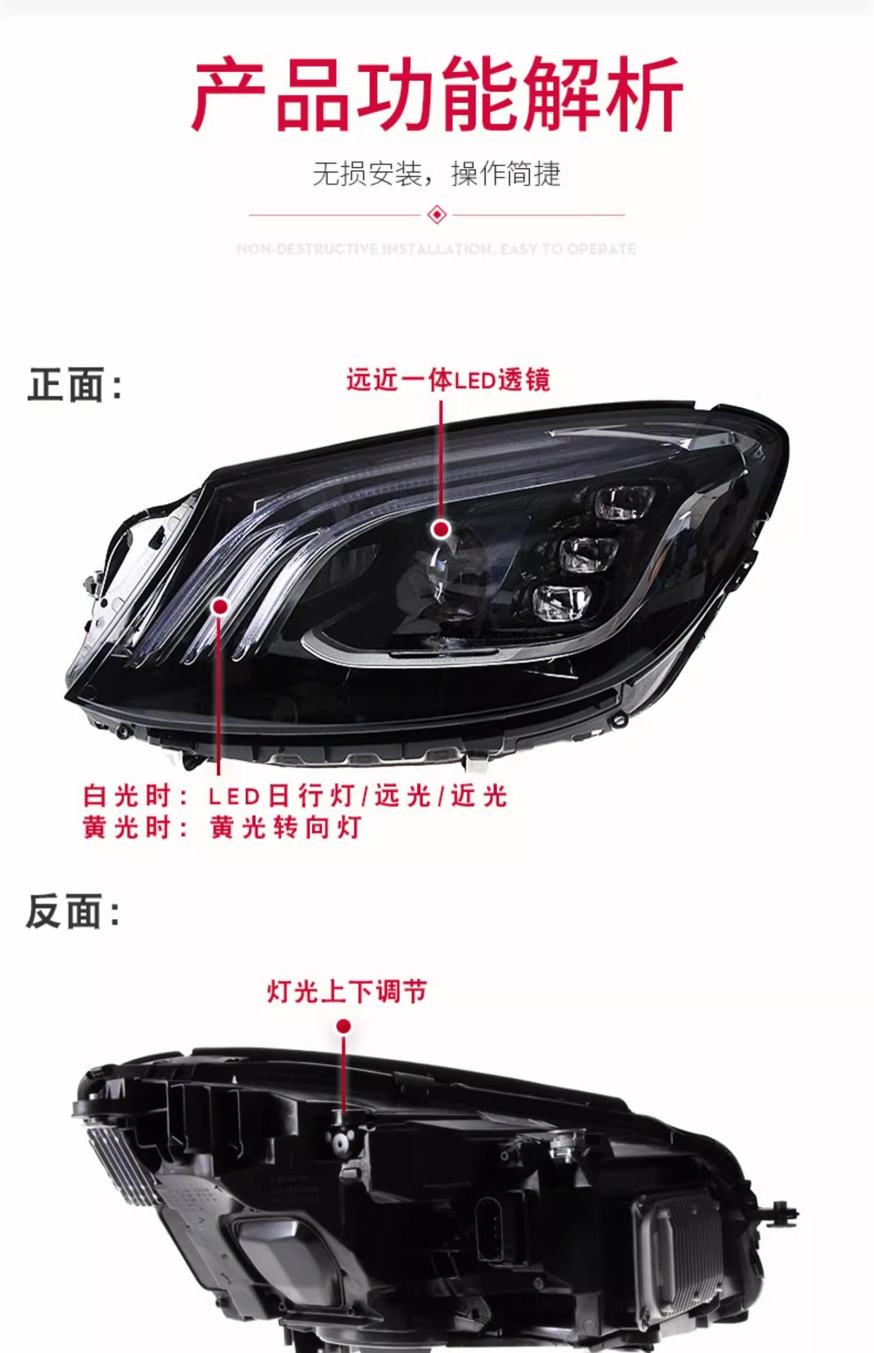 - Enhanced Styling: Upgrade your vehicle’s aesthetic from the old model to the sleek, contemporary look of newer S-Class Maybach headlights with integrated LED daytime running lights and advanced projector lenses.