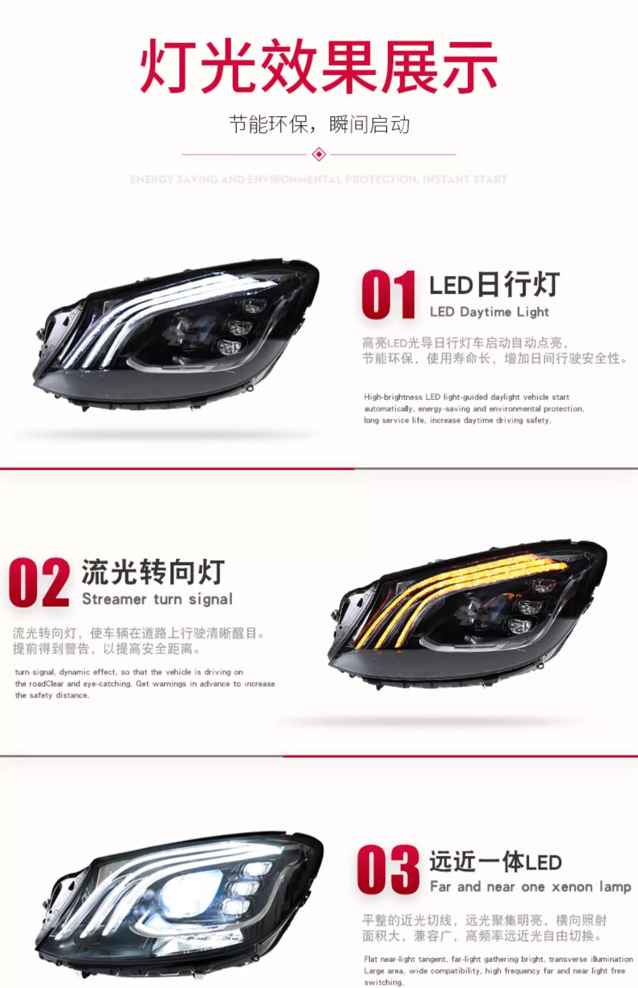 Full LED Headlight Assembly Conversion for Mercedes-Benz S-Class W222 Maybach (2014-2020)
