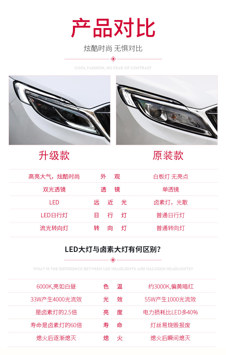 - Enhanced Visibility & Style: Features advanced full LED light source for superior brightness and clearer road illumination. Integrated with LED daytime running lights for improved safety and a modern, upgraded aesthetic.