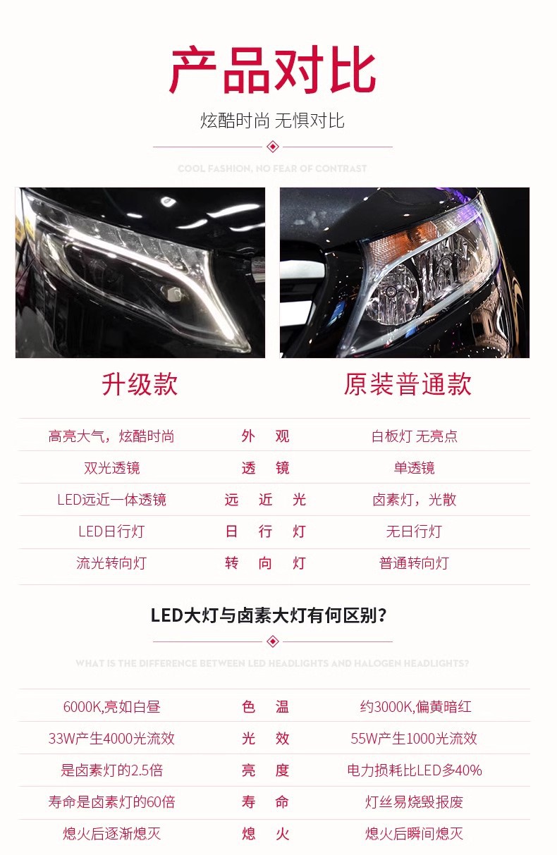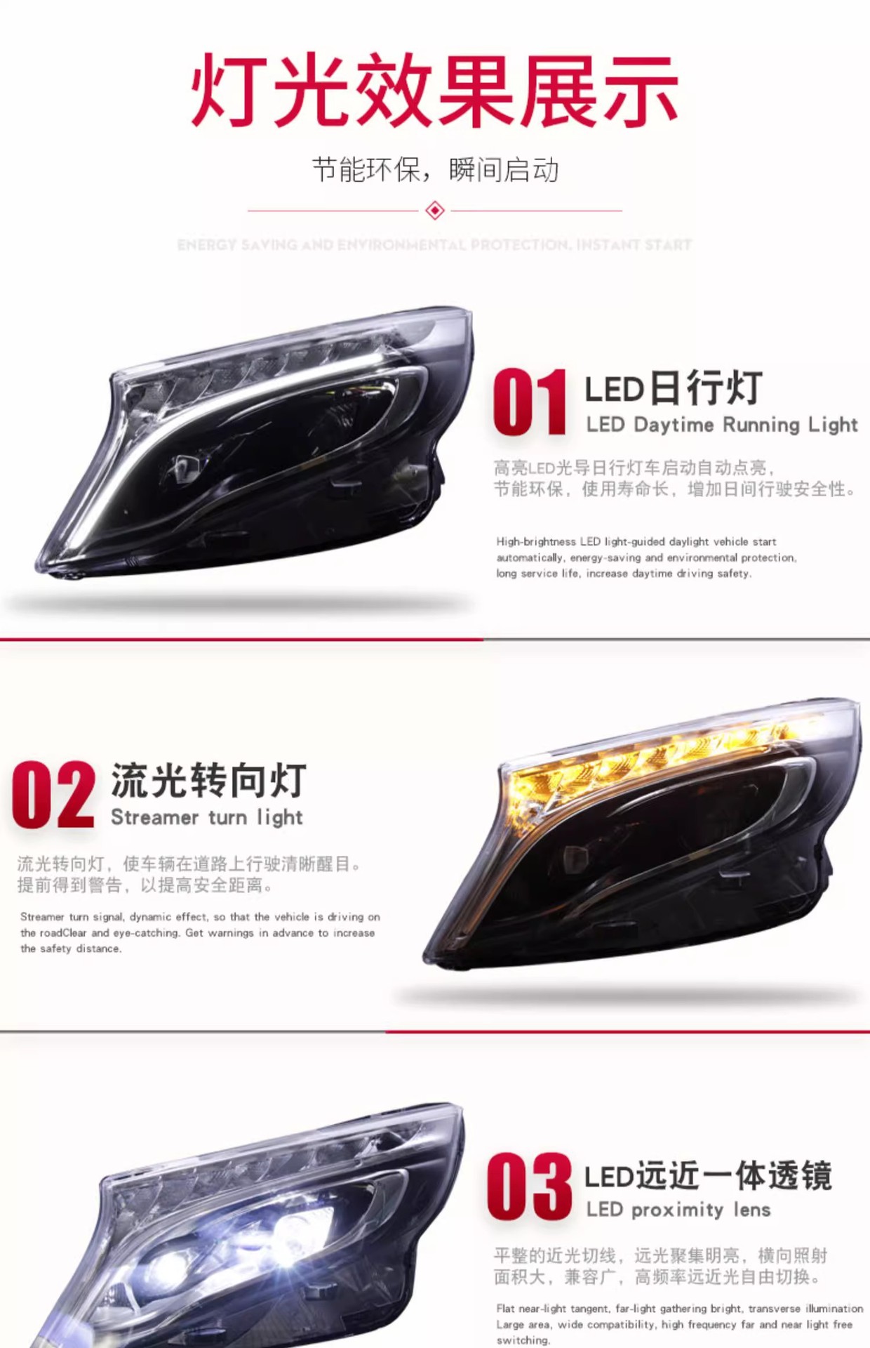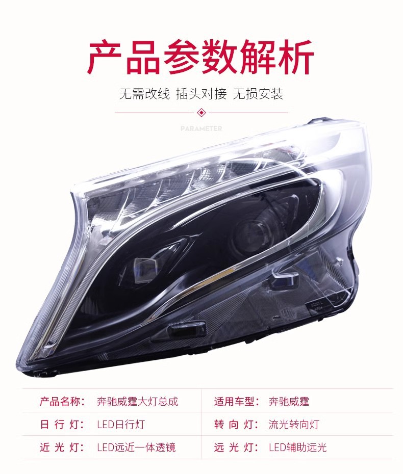 Full LED Headlight Assembly DRL Sequential Turn Signal for Mercedes Benz V-Class Vito New Vito