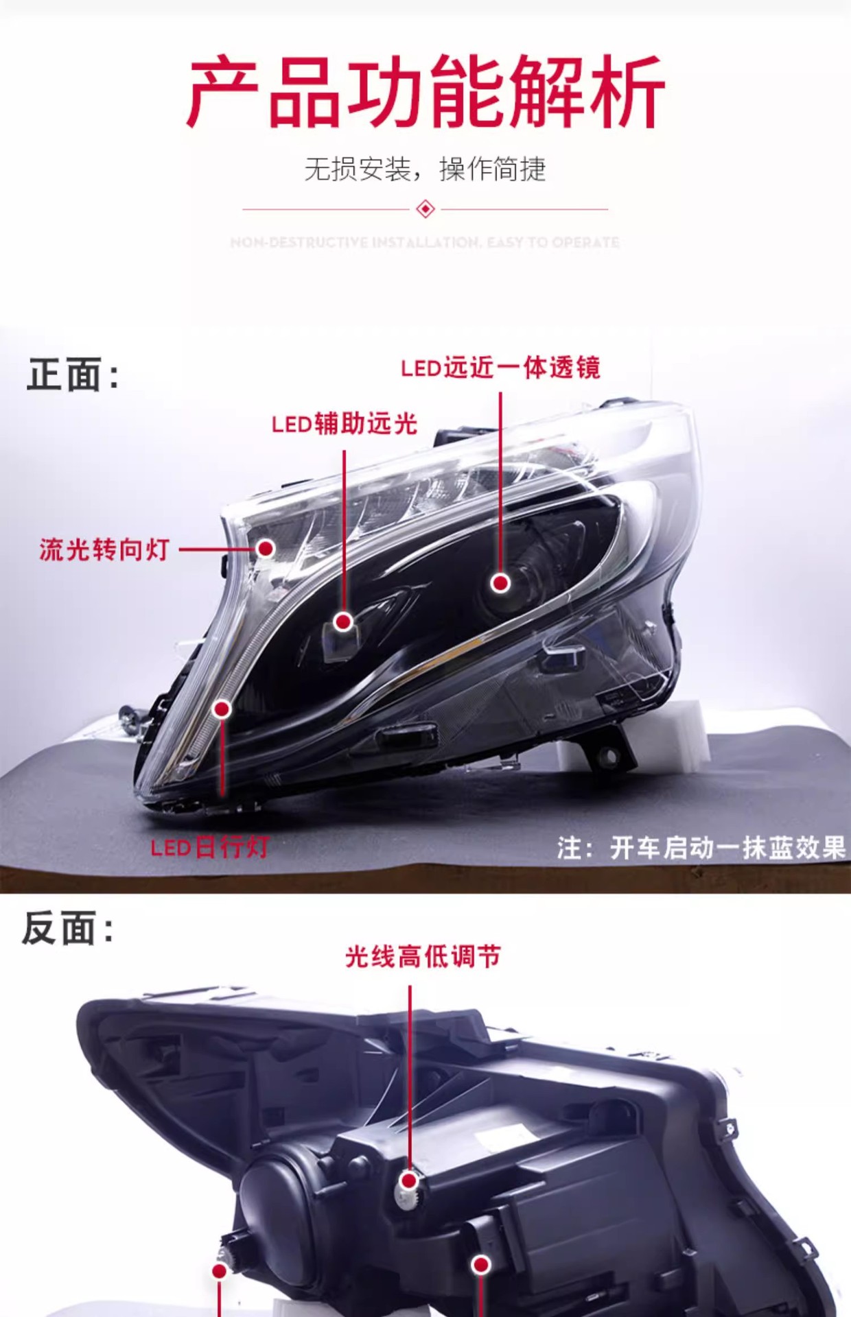 - Premium LED Illumination: Features advanced Full LED light source for superior brightness, clarity, and energy efficiency, enhancing nighttime visibility and safety.