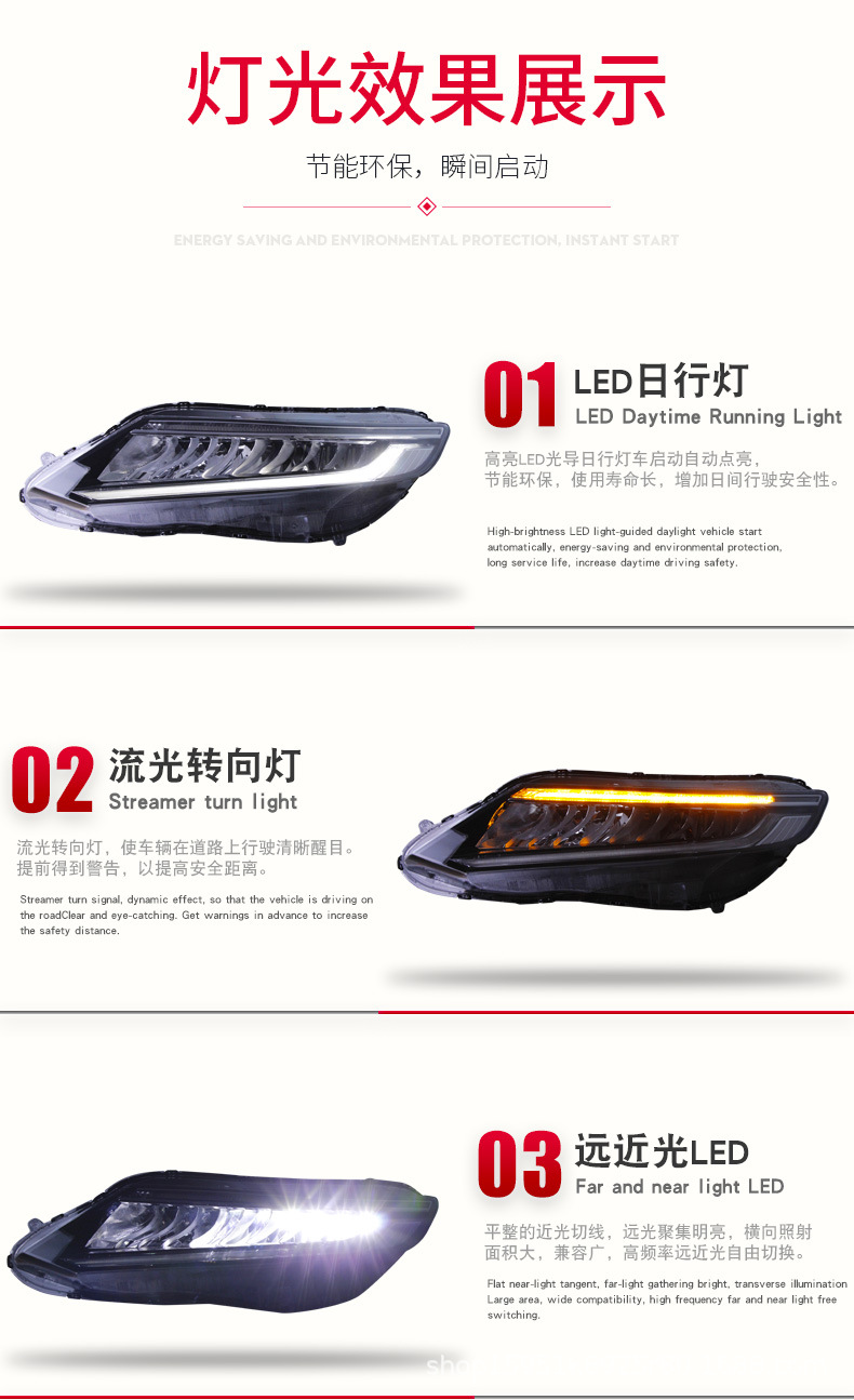 - Integrated Functionality: Combines essential driving lights, including Daytime Running Lights (DRL) and dynamic turn signals, into a single, high-performance headlight assembly for comprehensive functionality.