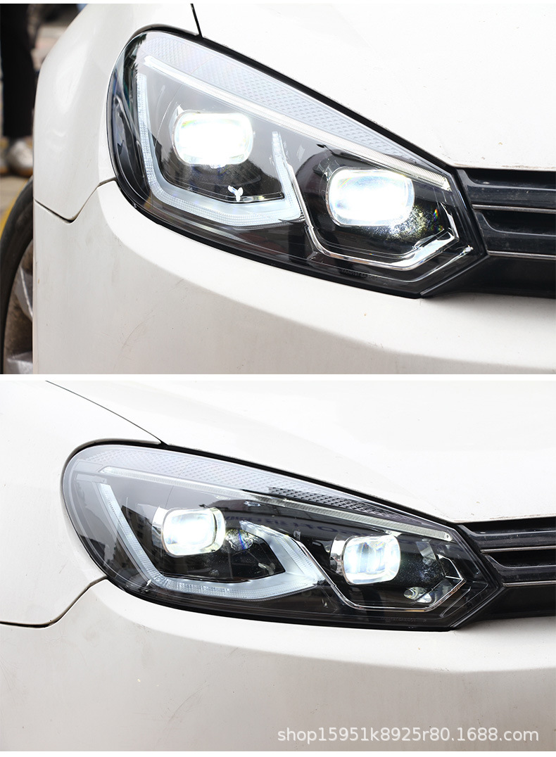 Full LED Headlight Assembly Dual Projector with Blue DRL Turn Signal for Golf 6