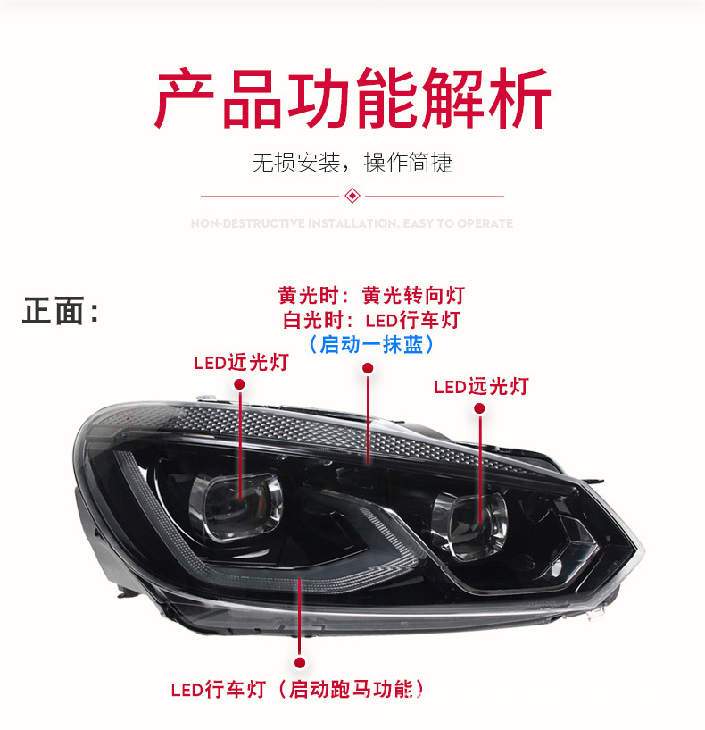 - Precise Fitment: Specifically designed for Golf 6 (Volkswagen Golf VI) models, ensuring a perfect, seamless replacement for your original headlight assembly.