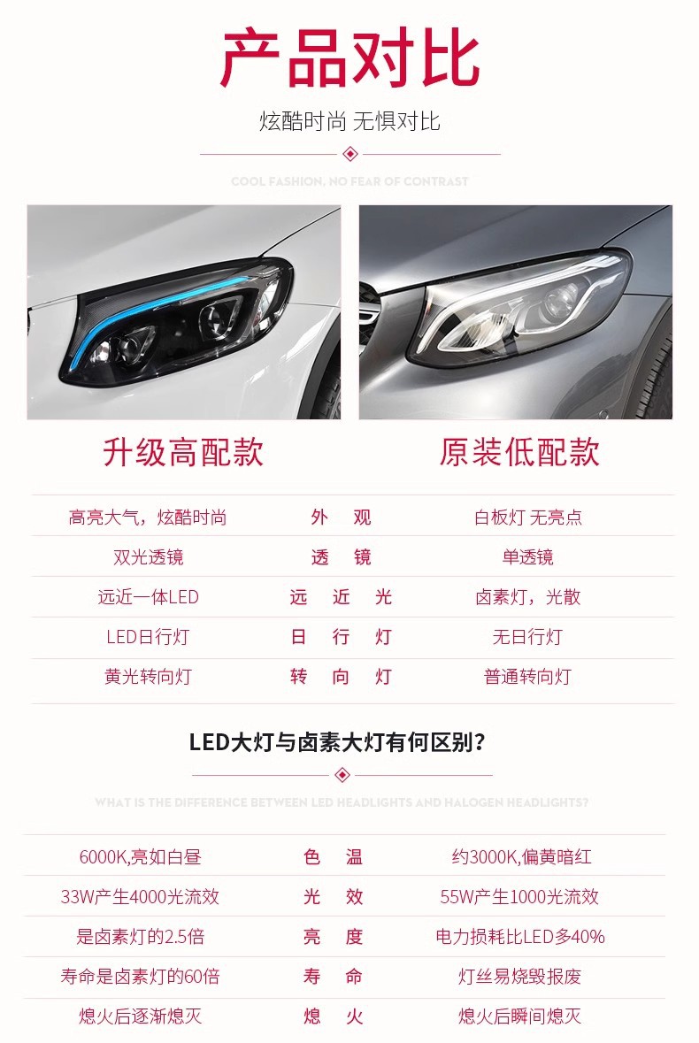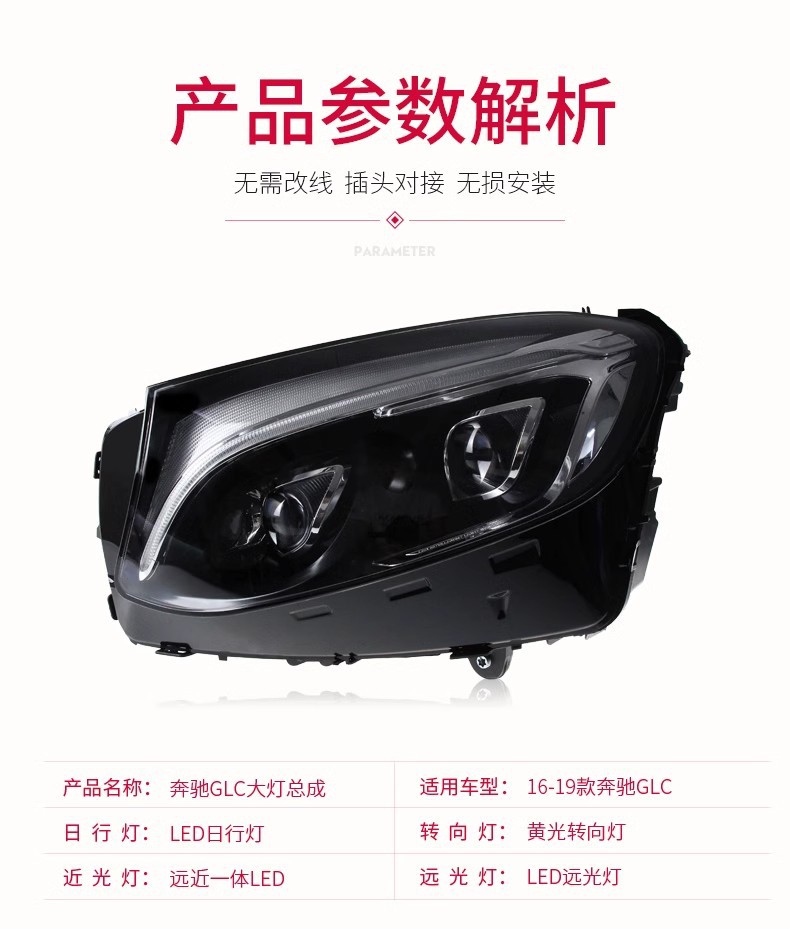 Full LED Headlight Assembly Dual Projector for Mercedes-Benz GLC W253 (2016-2019)