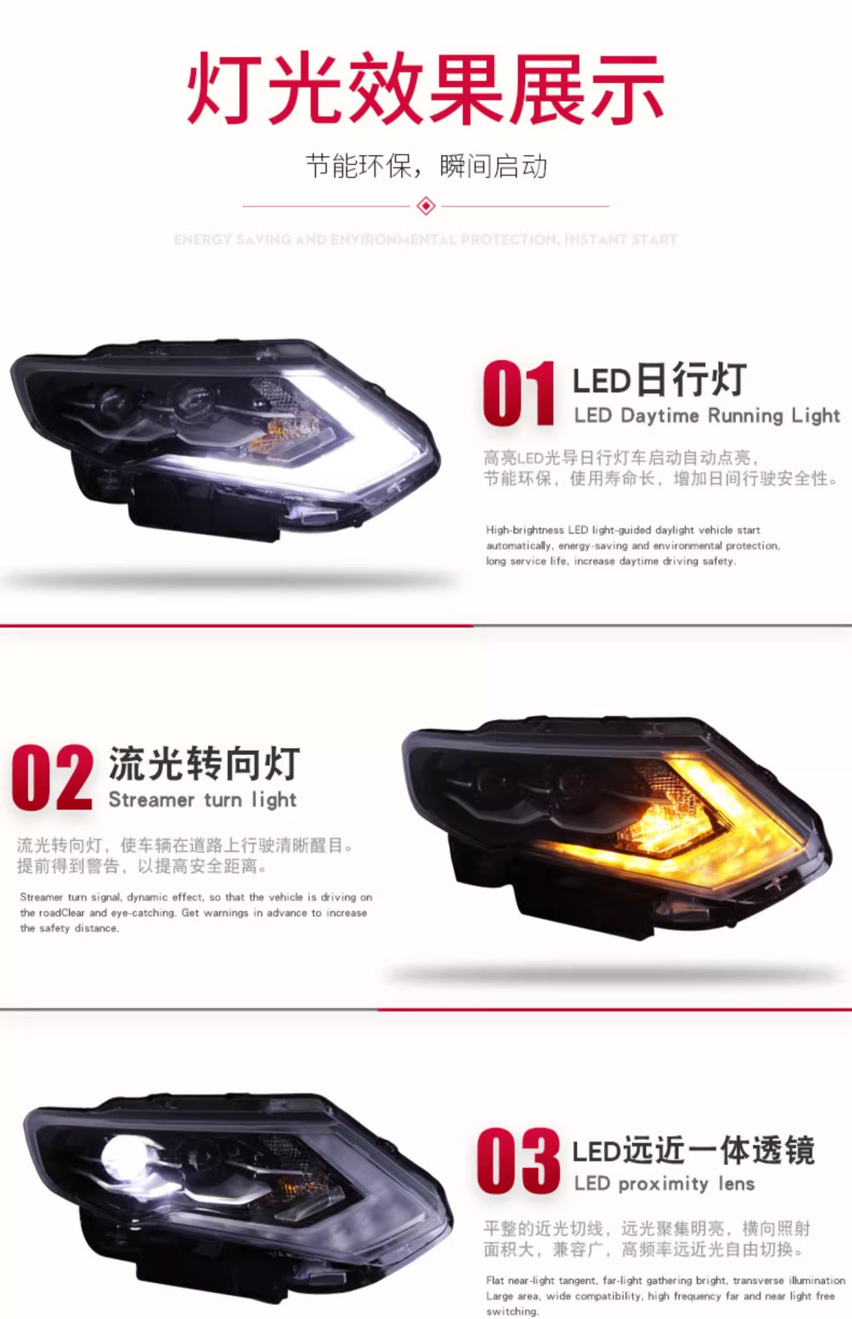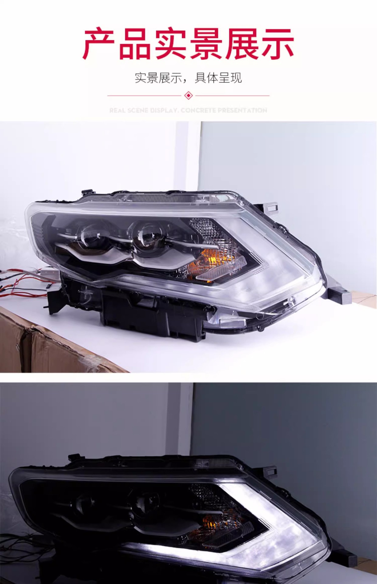 Full LED Headlight Assembly Flowing Turn Signal Bi-xenon Projector for Nissan X-Trail (2017-2019)