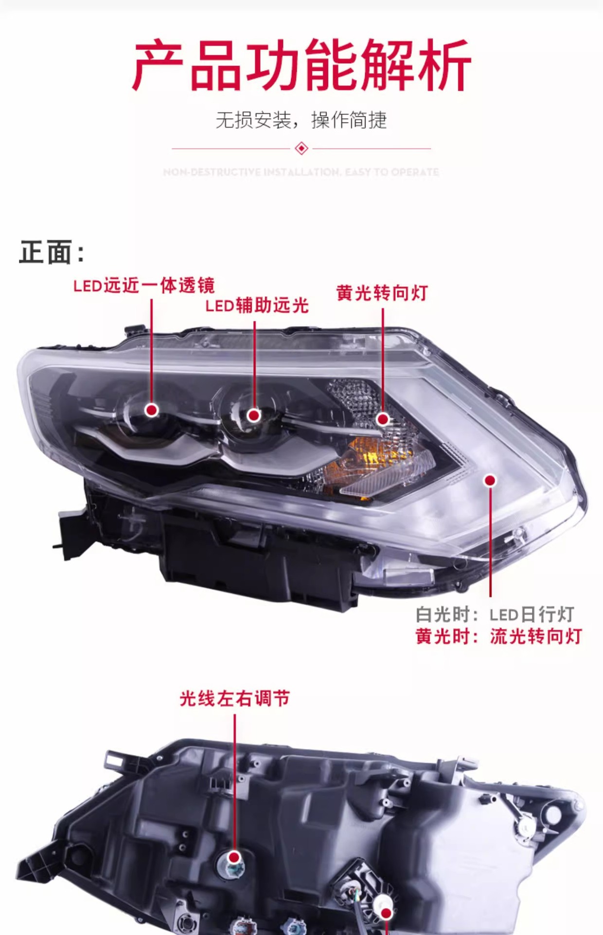 - Precise Fitment: Specifically designed for Nissan X-Trail models from 2017 to 2019, ensuring a perfect, direct-fit replacement for your original headlight assembly.