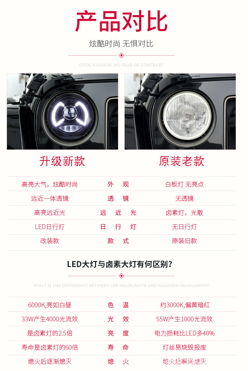 - Enhanced Road Safety: Provides a clearer and wider beam pattern compared to halogen lights, significantly improving nighttime driving safety. The bright LED DRLs make your vehicle more noticeable, reducing accident risks in various weather conditions.