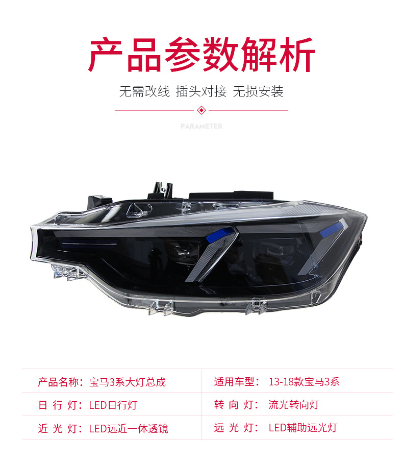 Full LED Headlight Assembly for BMW 3 Series F30 F35 320 325 328 335 (2012-2018) with Sequential Turn Signal