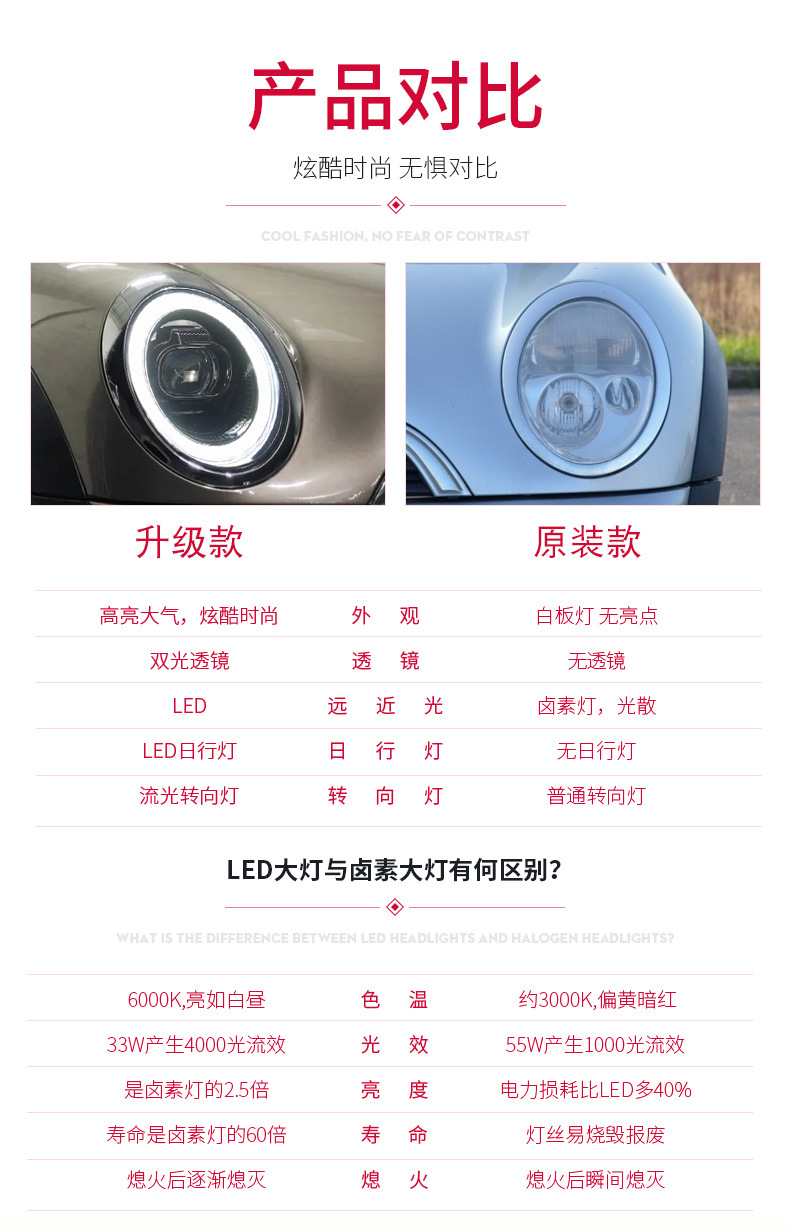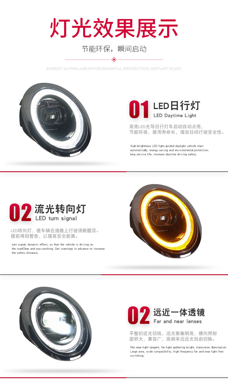 - Enhanced Aesthetics & Styling: Features modern full LED illumination with dazzling daytime running lights (DRL) and dynamic sequential turn signals, transforming the front-end look of your Mini Cooper.
