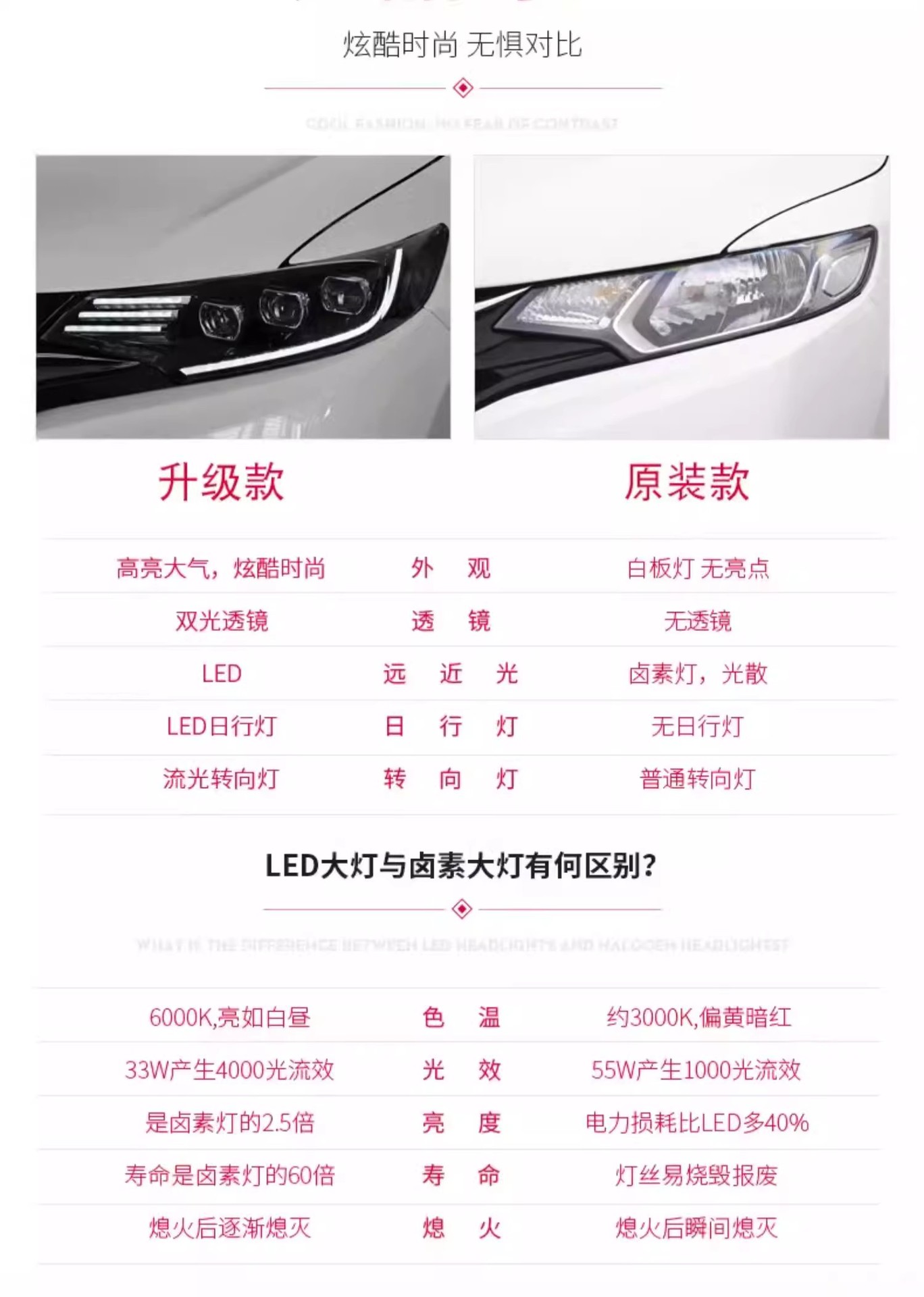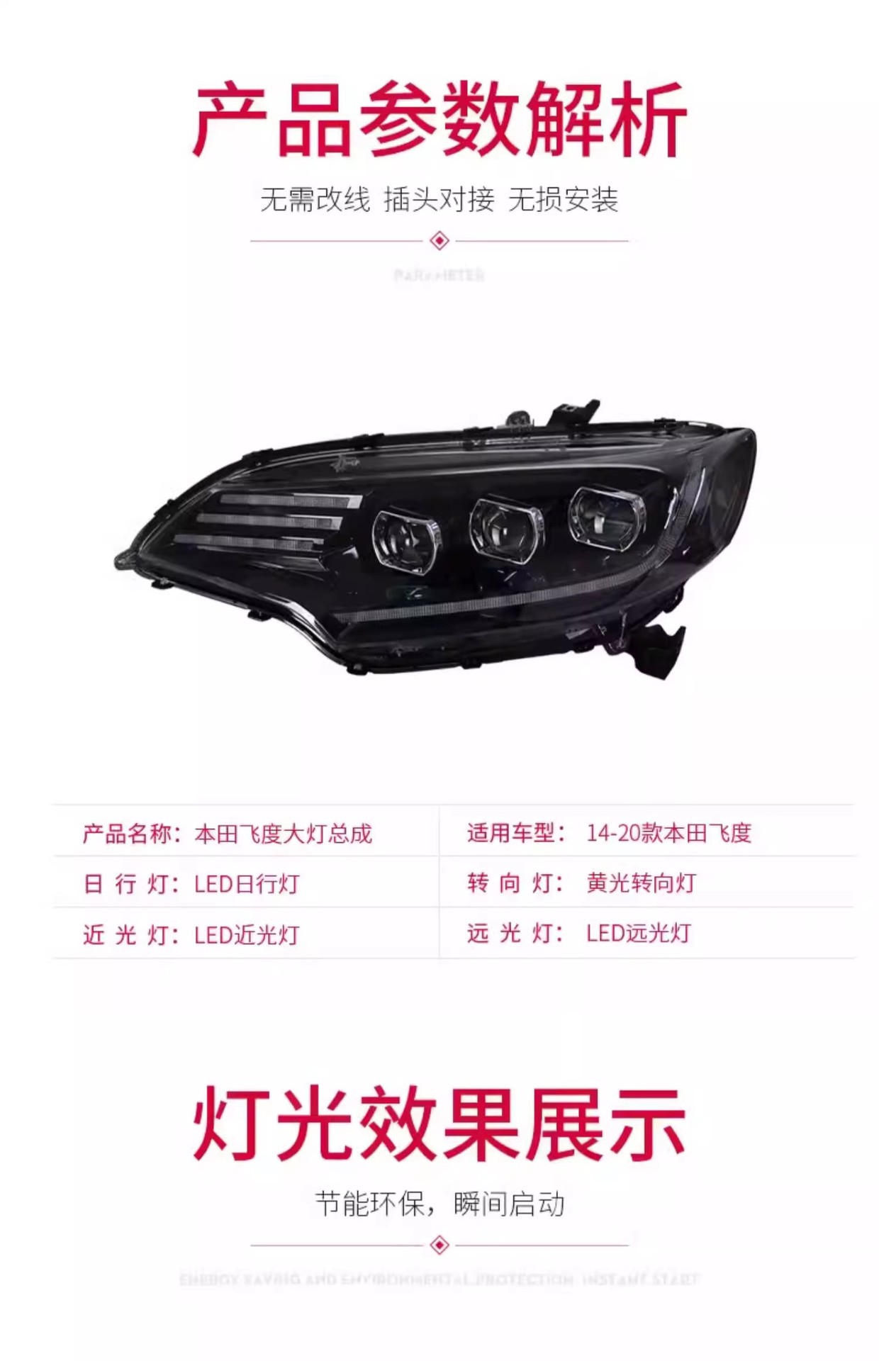 - Complete Set Included: Package contains a full set of LED headlight assemblies (left and right), offering a comprehensive upgrade solution to refresh the front-end appearance of your Honda Fit.