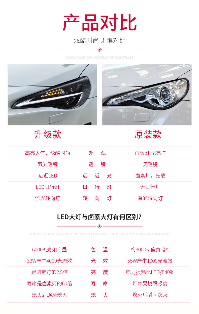 - Enhanced Styling: Features modern LED daytime running lights and dynamic sequential turn signals, transforming your vehicle’s front-end aesthetics with a sleek, upgraded, and eye-catching look.