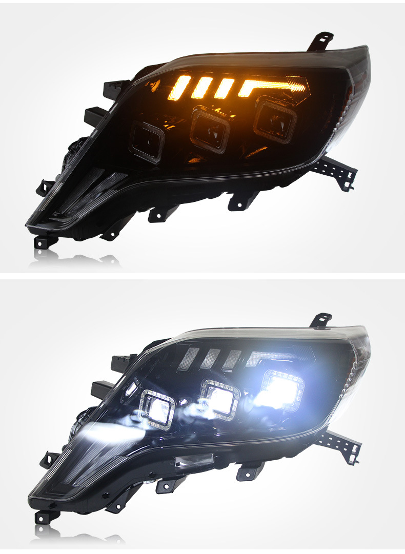 LED Headlight Assembly with Running Light and Flowing Turn Signal for Toyota Prado 2003-2009