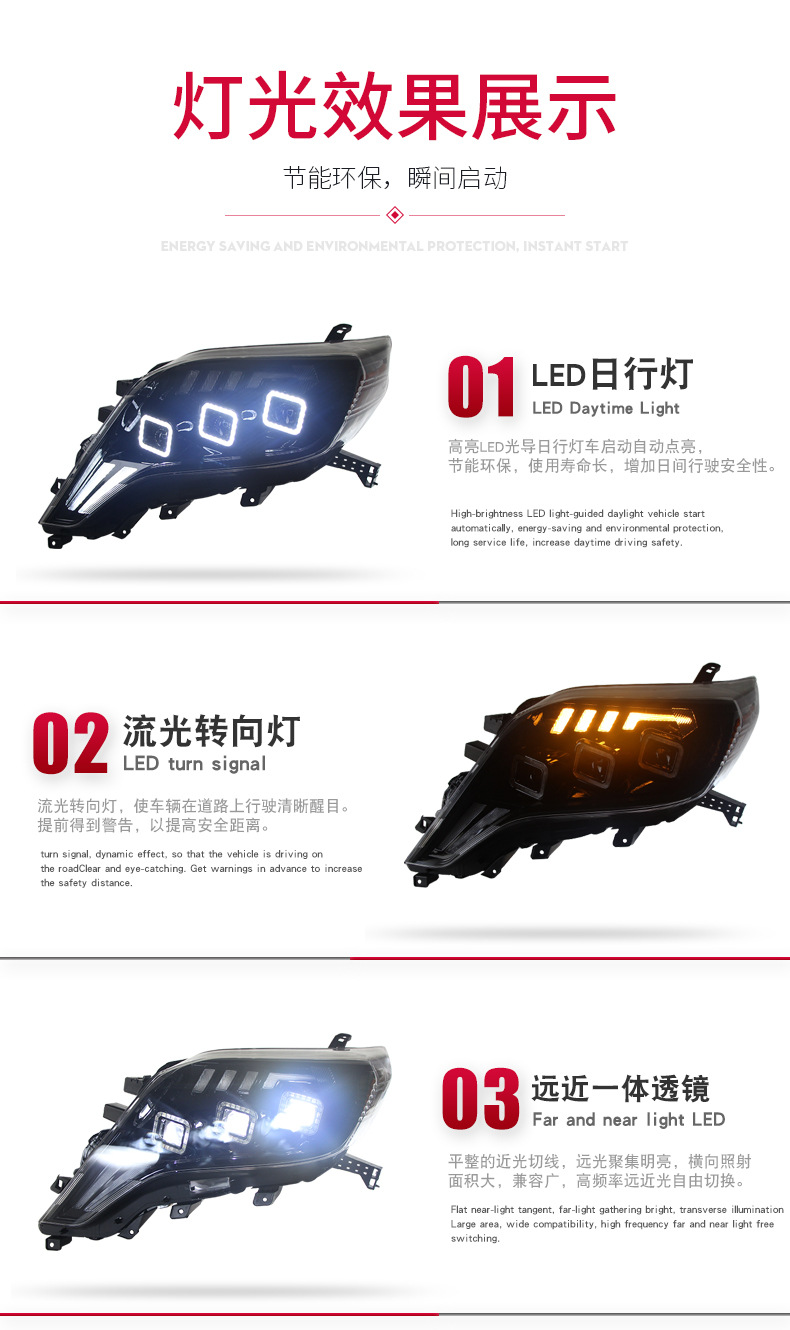 - Enhanced Vehicle Aesthetics: Modern design with clear lens styling and sleek lines instantly upgrades the look of your Prado, offering a more aggressive and contemporary appearance.