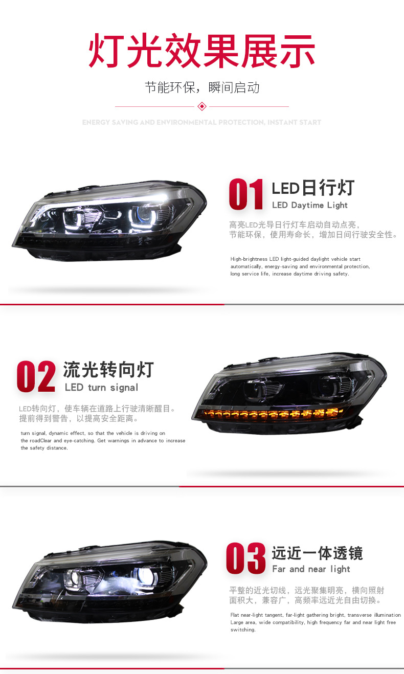 Full LED Headlight Assembly for VW Santana (2016-2022) with LED Daytime Running Lights and Sequential Turn Signal