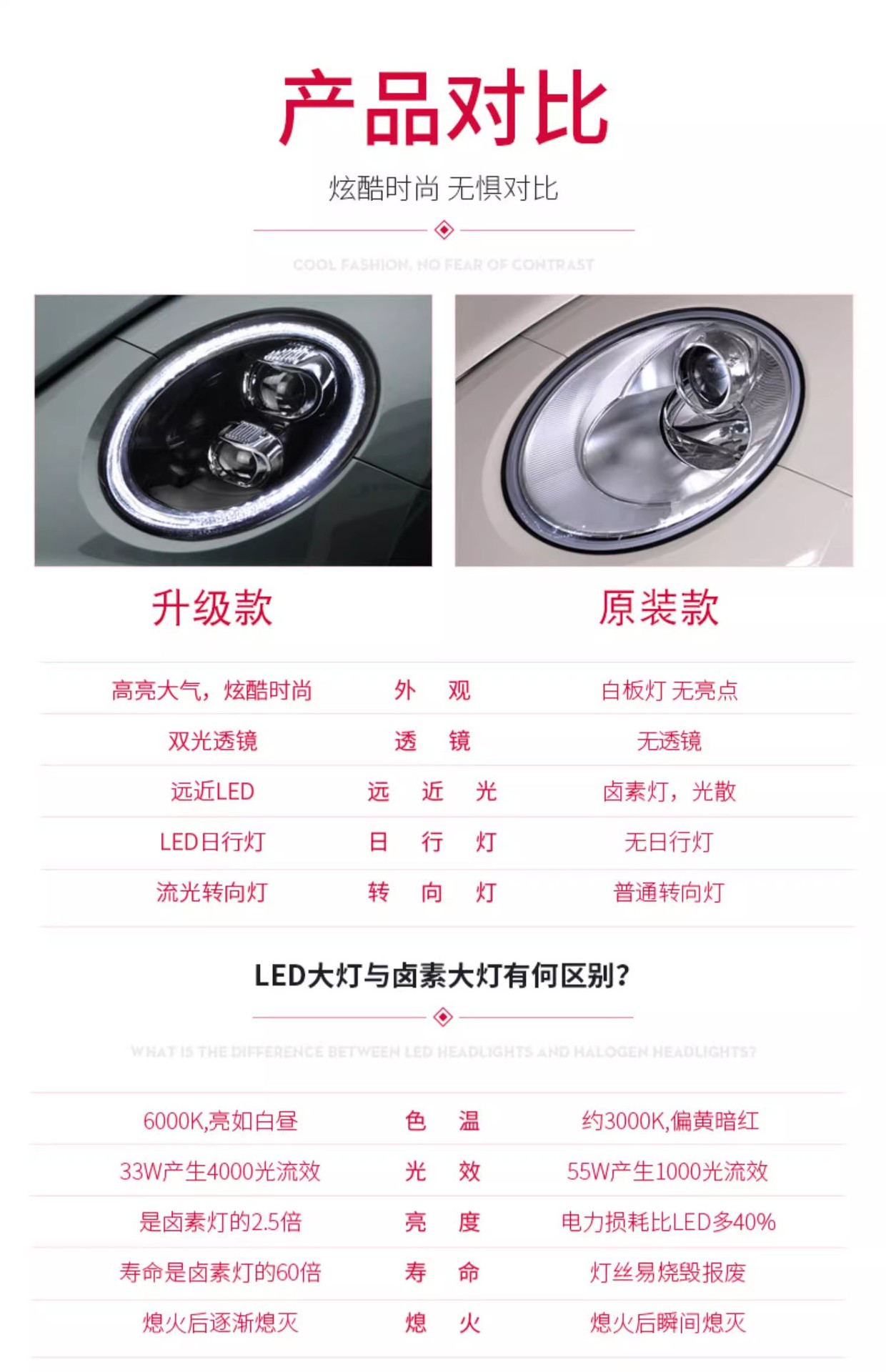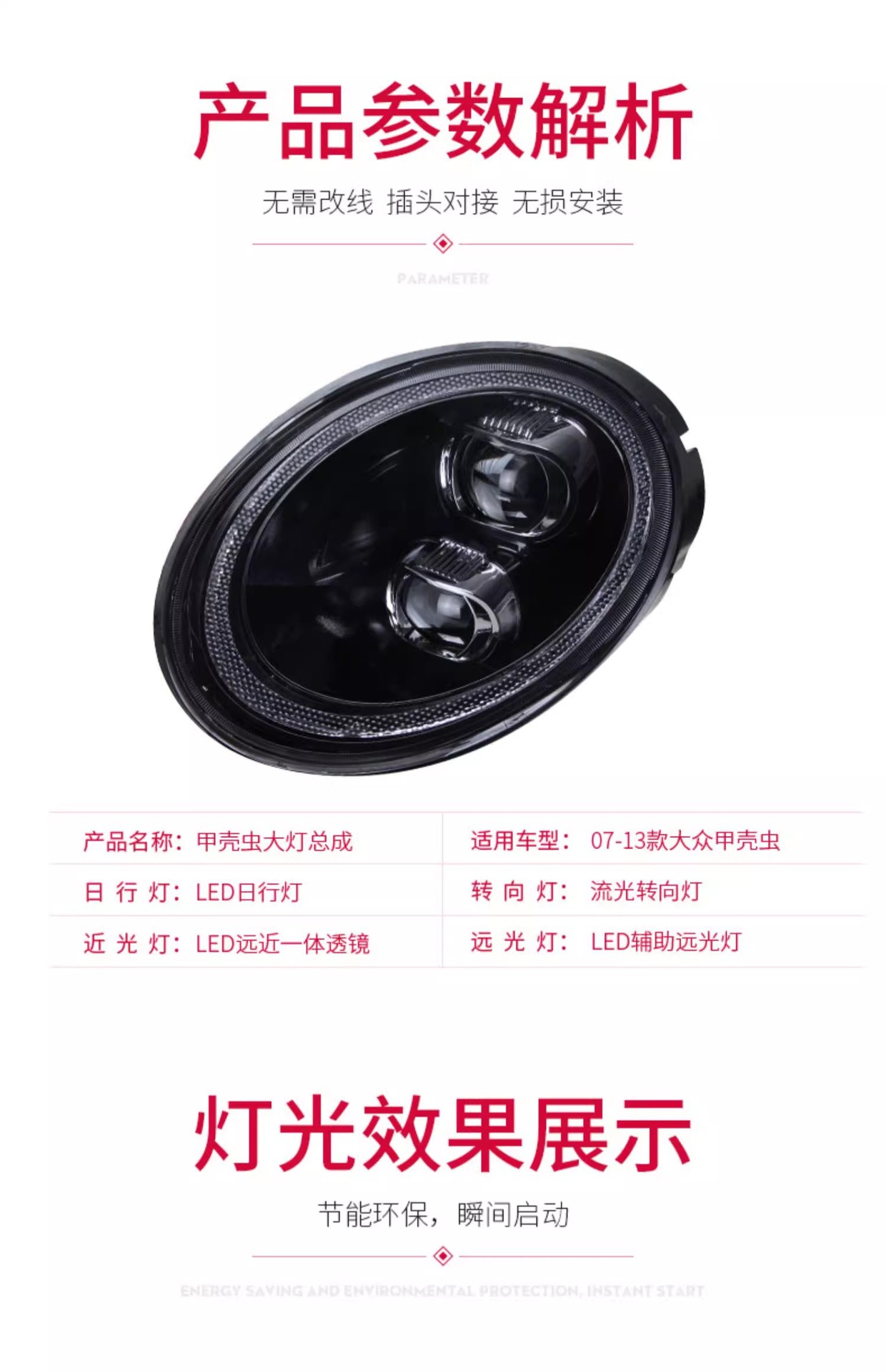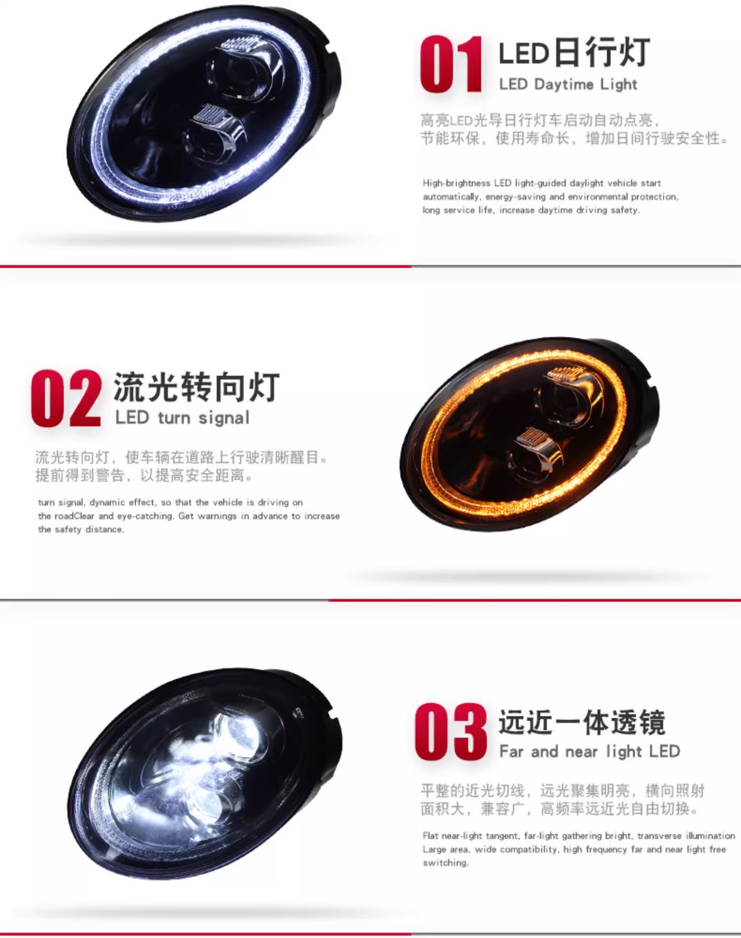 - Enhanced Styling & Safety: Upgrade your Beetle’s appearance with modern full LED illumination, featuring bright LED daytime running lights (DRL) and dynamic streamer turn signals for improved visibility and a distinctive look on the road.